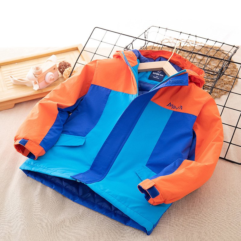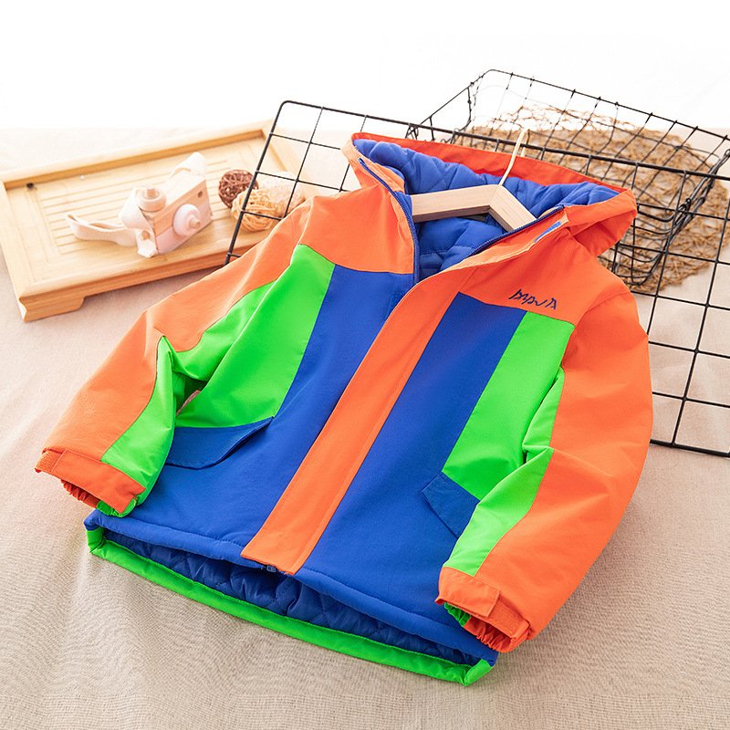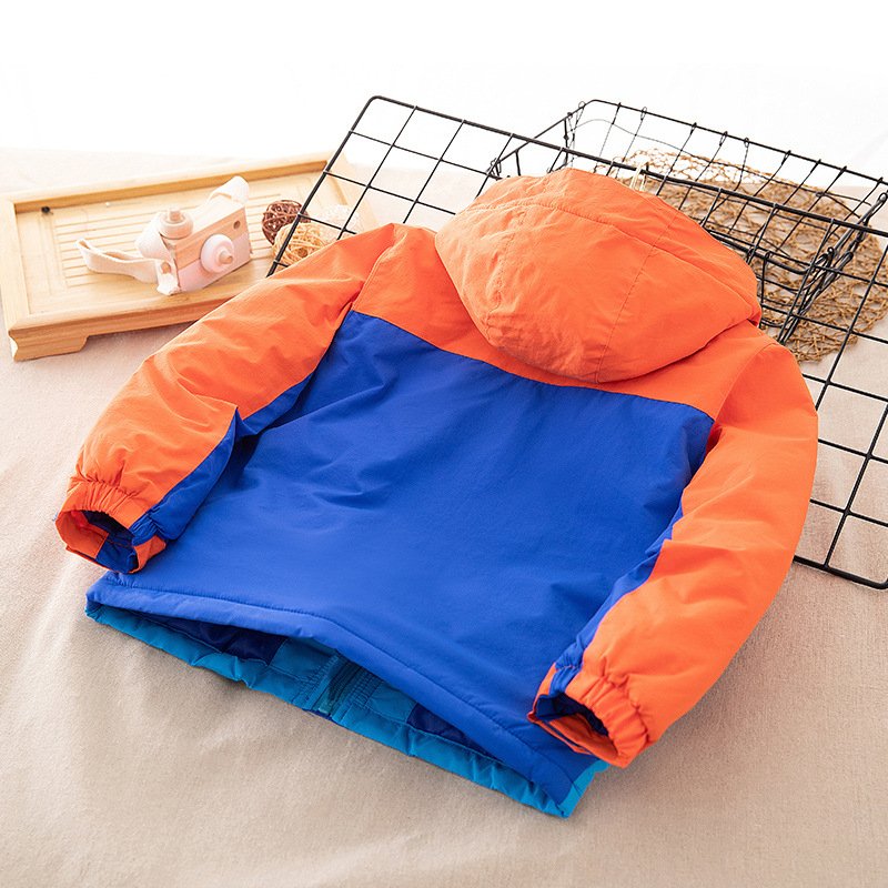 Kids Boys Fashion Casual Color Block Long-Sleeve Cotton Windproof Warm Hoodies Jacket