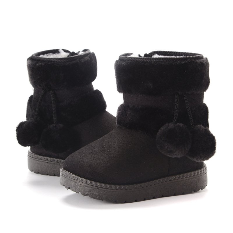 Kids Boys Girls Autumn Winter Fashion Casual Solid Color Fur Ball Round-Toe Flats Slip On Platform Shoes Snow Mid Calf Boots