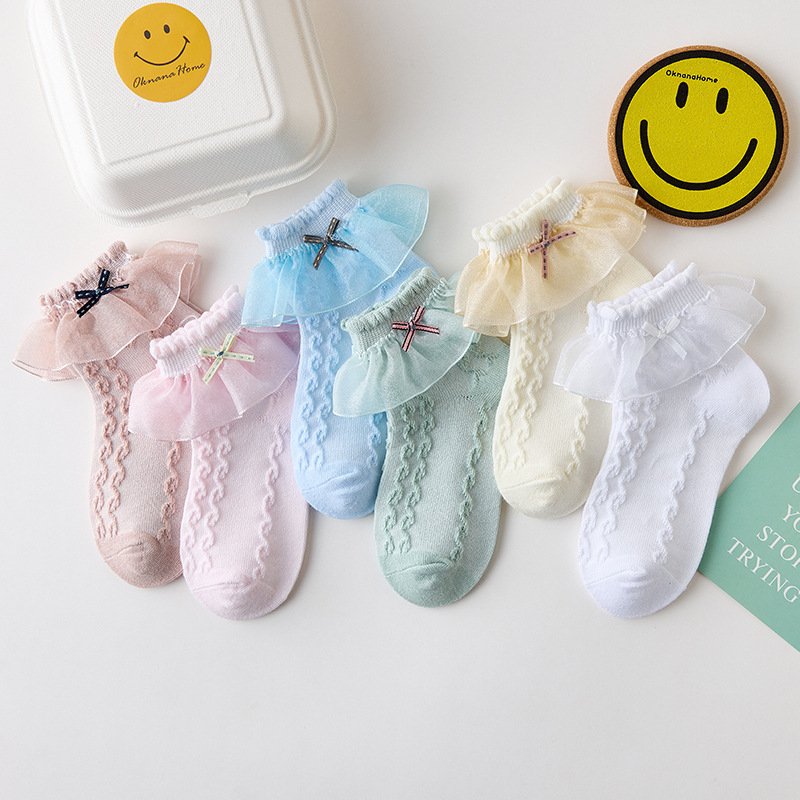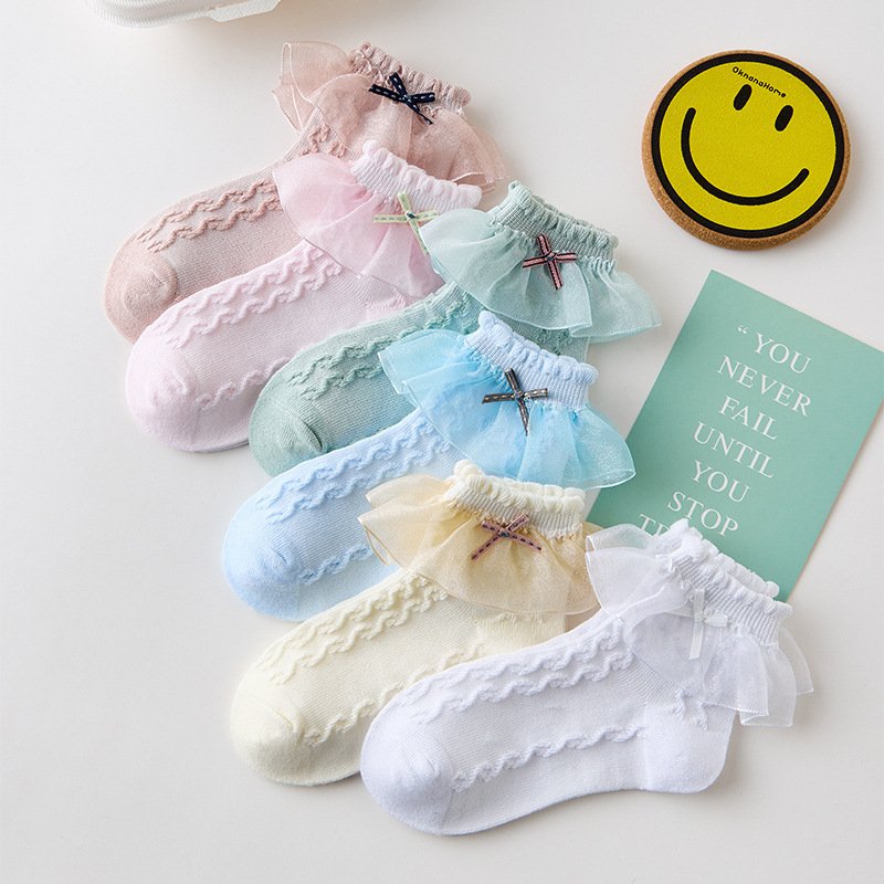 Kids Boys Girls Basic Casual Cute Solid Color Lace Socks