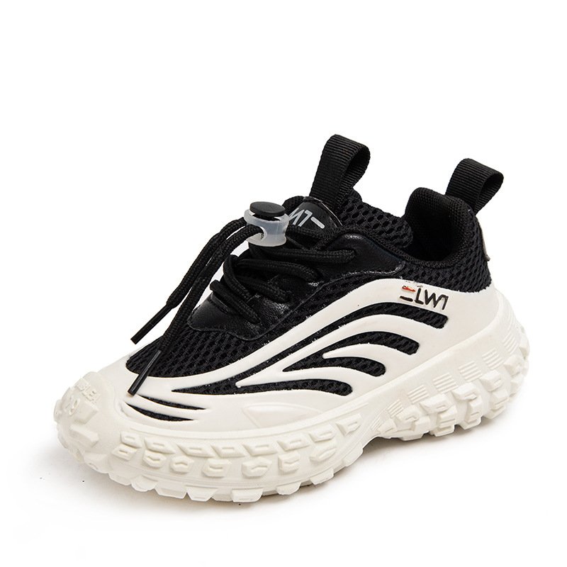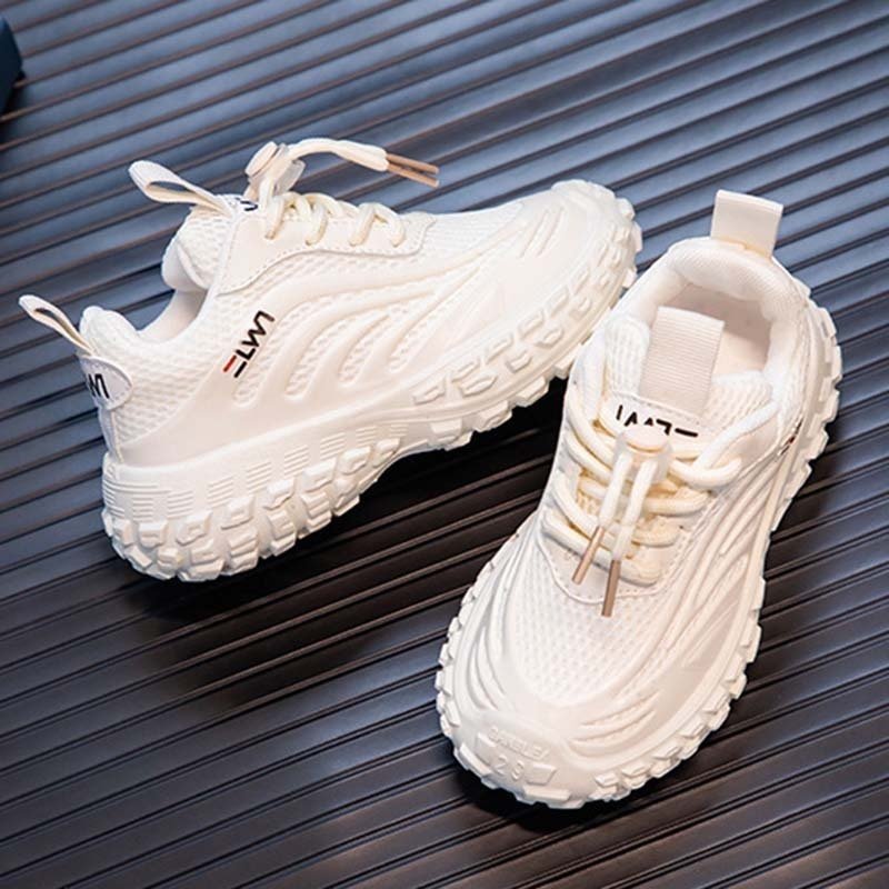 Kids Boys Girls Casual Cute Sports Mesh Cloth Round-Toe Lace-Up Thick-Soled Luminous Sneakers