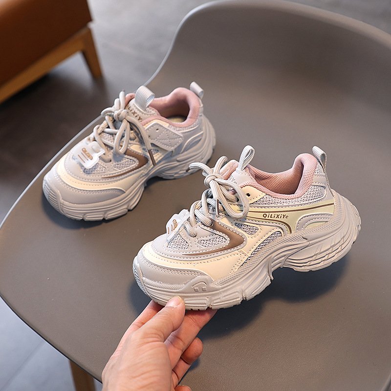 Kids Boys Girls Casual Sports Mesh Cloth Thick-Soled Sneakers