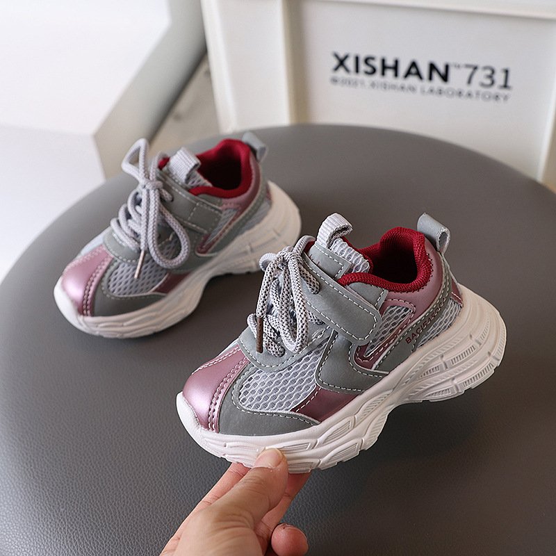 Kids Boys Girls Casual Versatile Lace-Up Mesh Thick-Soled Sneakers