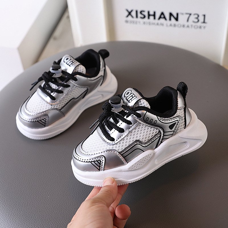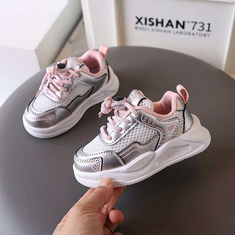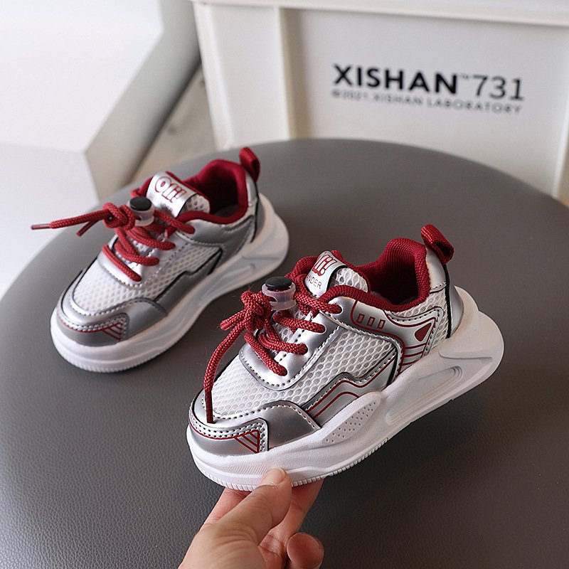 Kids Boys Girls Casual Versatile Lace-Up Mesh Thick-Soled Sneakers