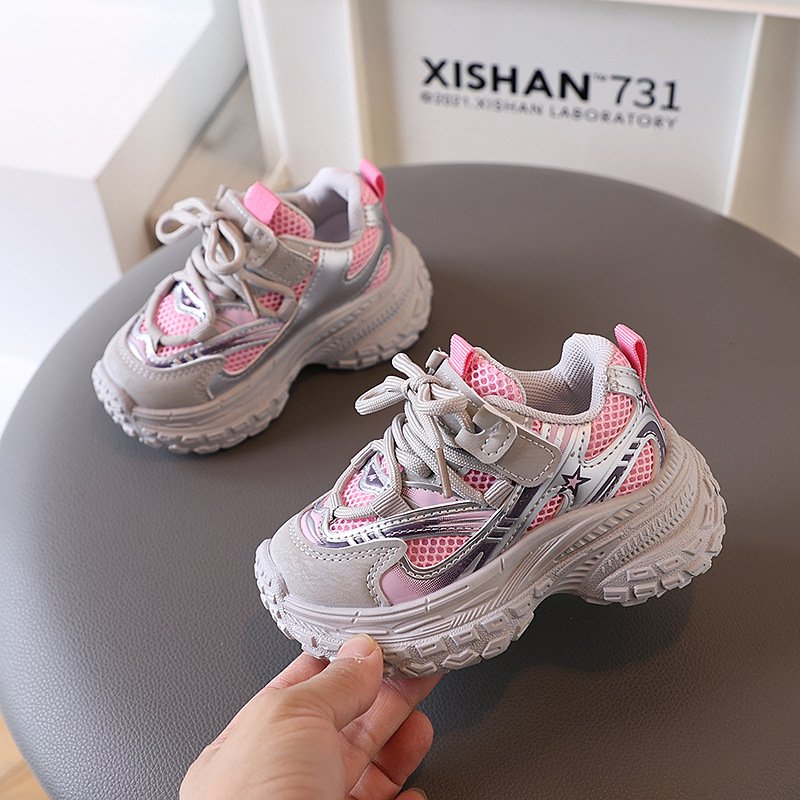 Kids Boys Girls Casual Versatile Velcro Lace-Up Thick-Soled Sneakers