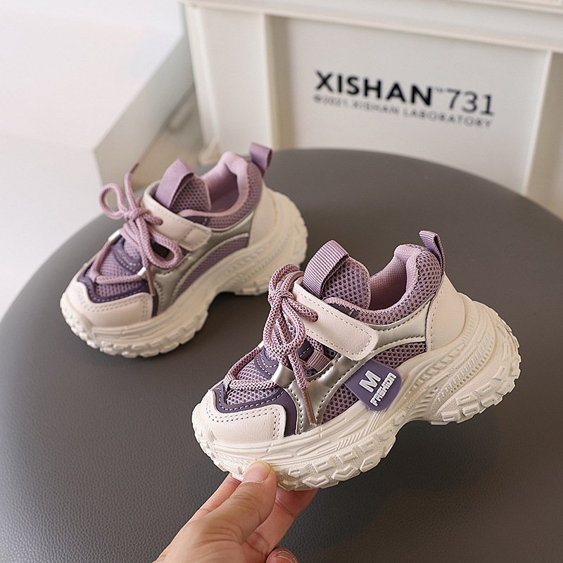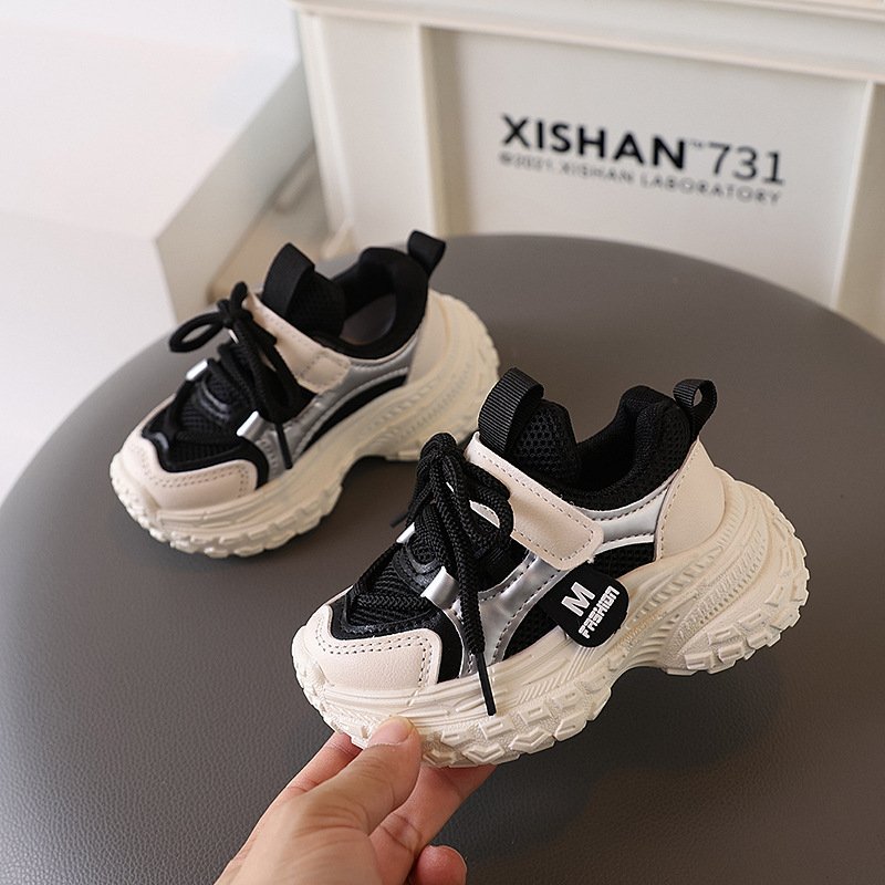 Kids Boys Girls Casual Versatile Velcro Lace-Up Thick-Soled Sneakers