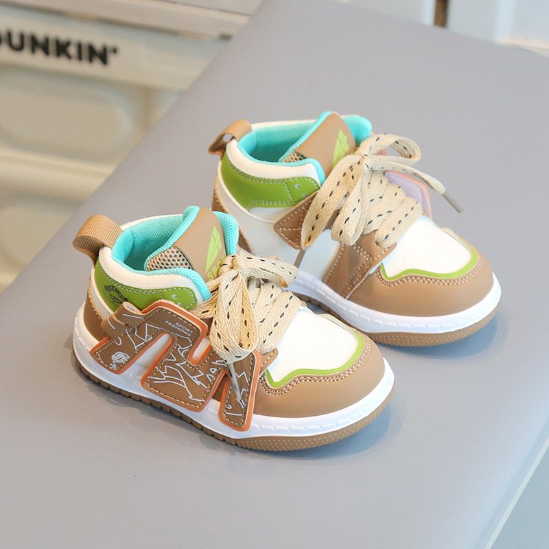 Kids Boys Girls Fashion Casual Round-Toe Lace-Up Colorblock High Top Sneakers