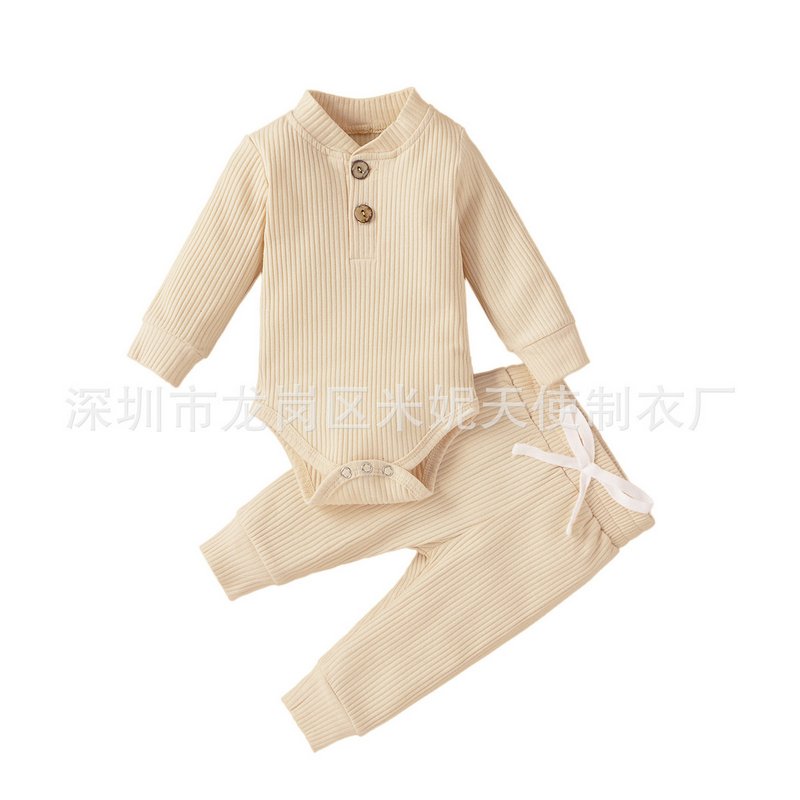 Kids Bys And Girls Autumn And Winter Solid Color Stripes Long-Sleeve Bodysuits Drawstring Pants Two-Piece Set