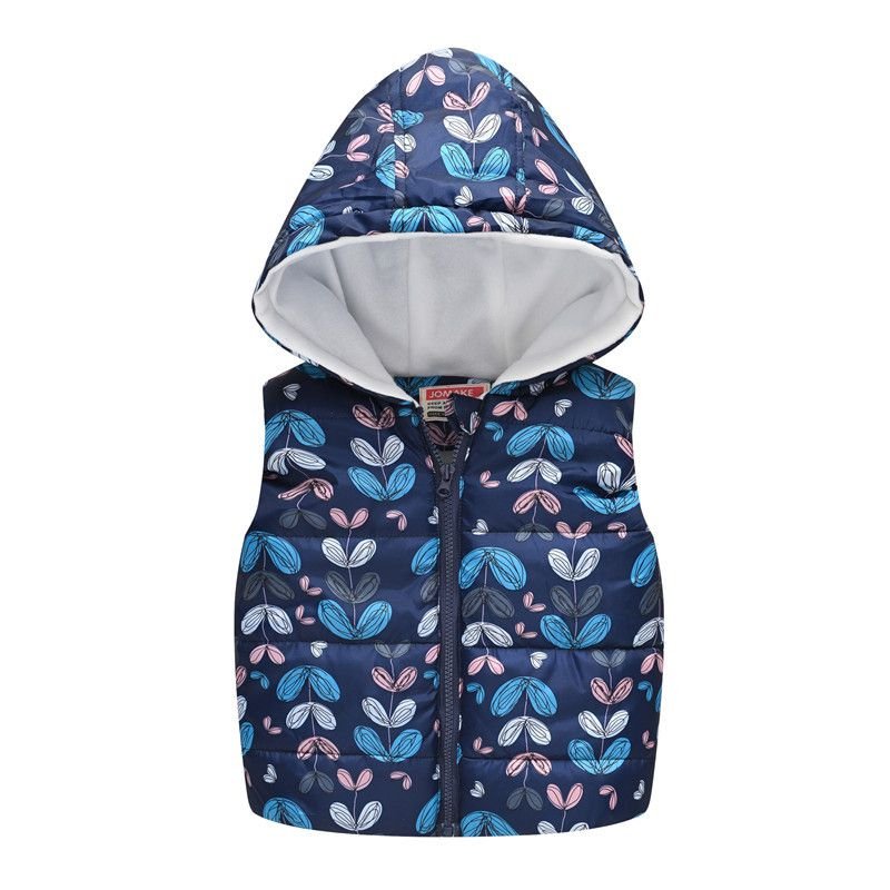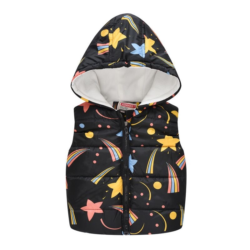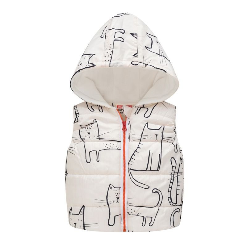 Kids Cartoon Pattern Decor Zipper Hooded Vest Coat