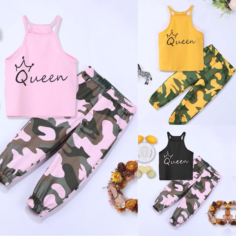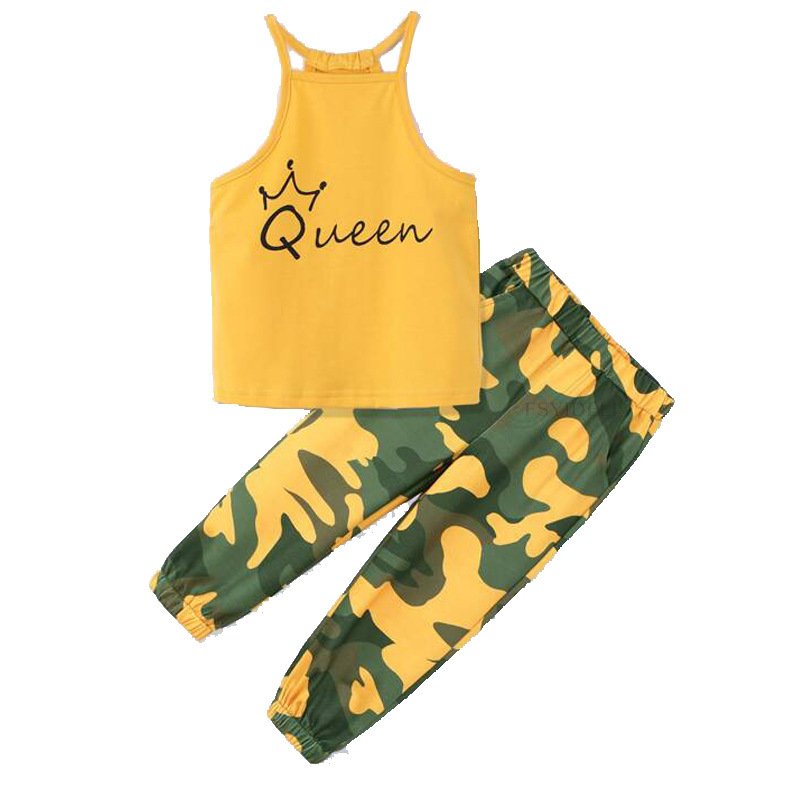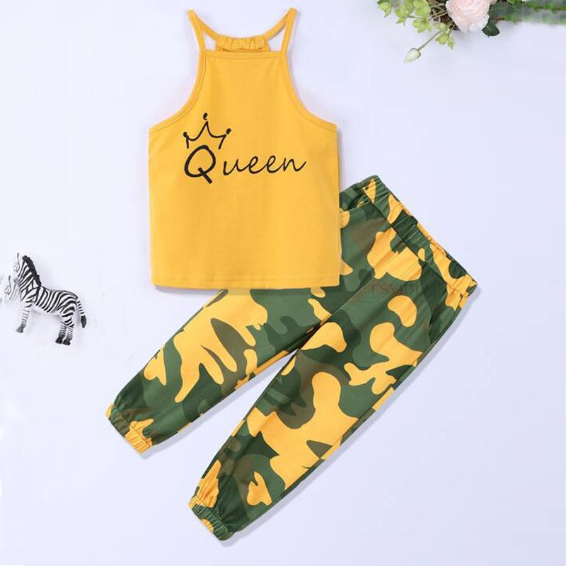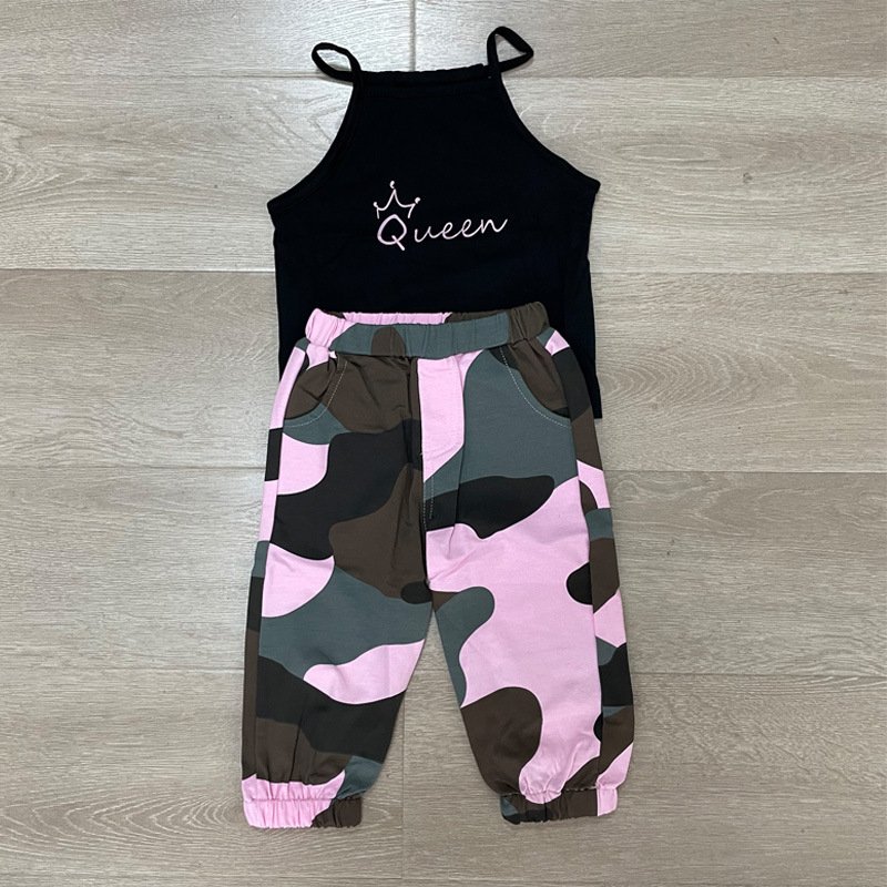 Kids Casual Alphabet Vest Camouflage Trousers Two-Piece Set