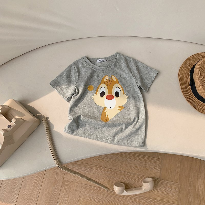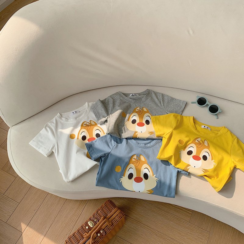 Kids Casual Cartoon Animal Squirrel Pattern Round Neck Short Sleeve Loose T-Shirt