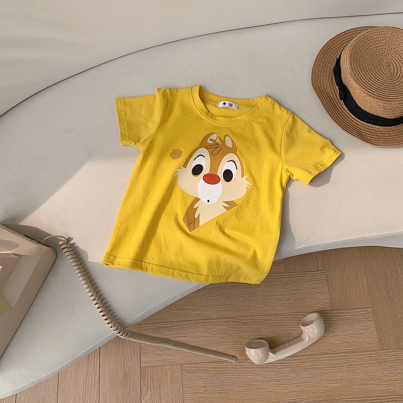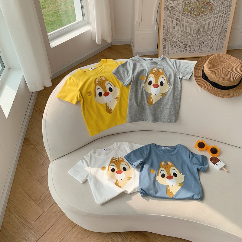 Kids Casual Cartoon Animal Squirrel Pattern Round Neck Short Sleeve Loose T-Shirt