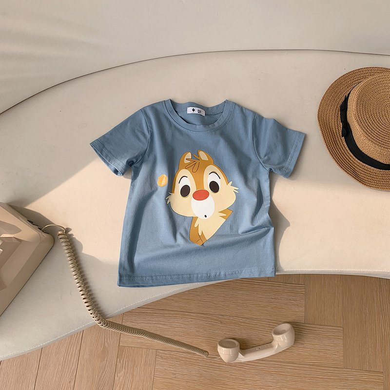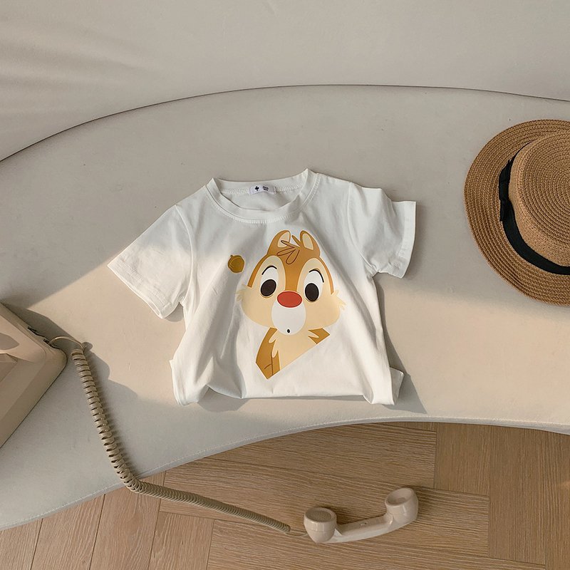 Kids Casual Cartoon Animal Squirrel Pattern Round Neck Short Sleeve Loose T-Shirt
