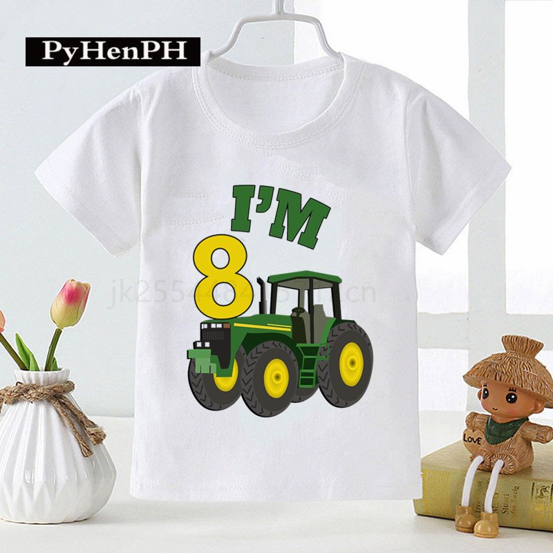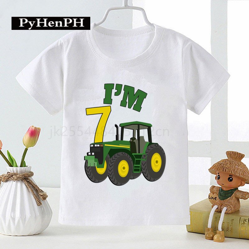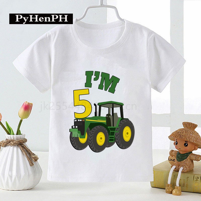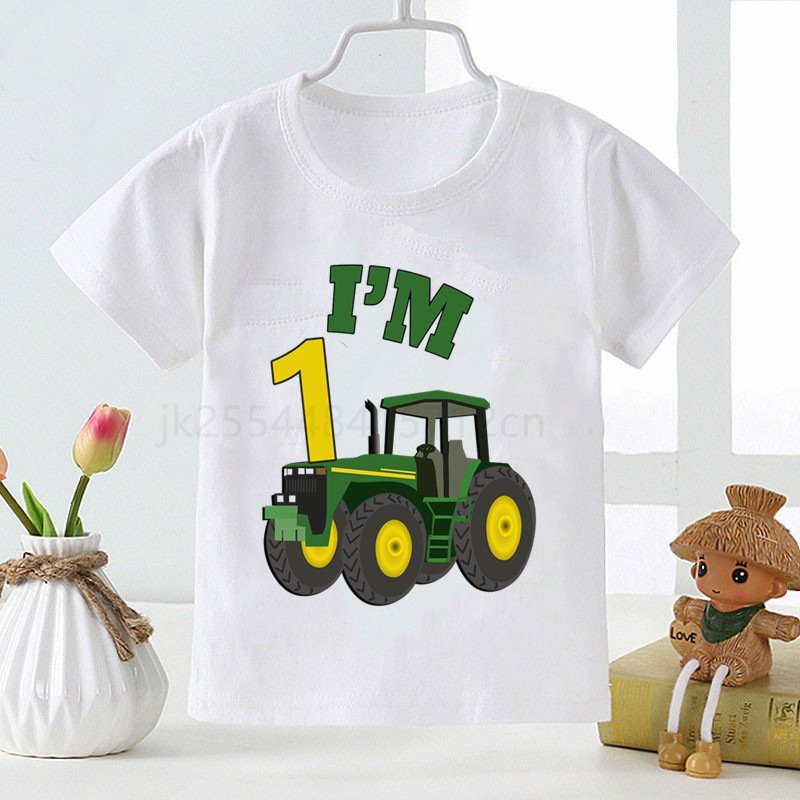 Kids Casual Cartoon Engineering Vehicle Birthday Number Pattern Round Neck Short Sleeve Loose T-Shirt
