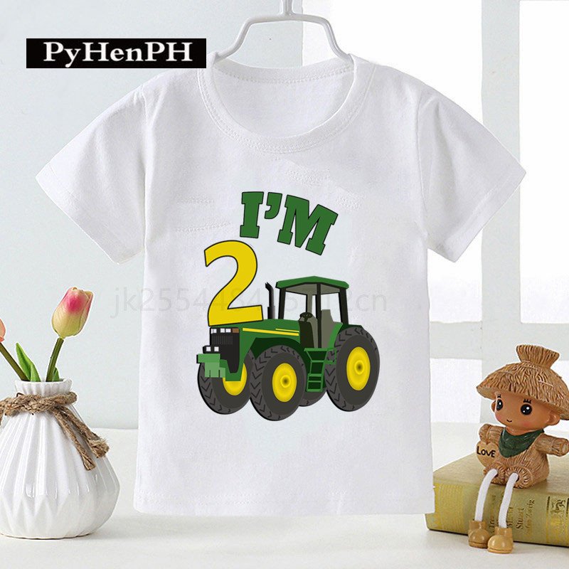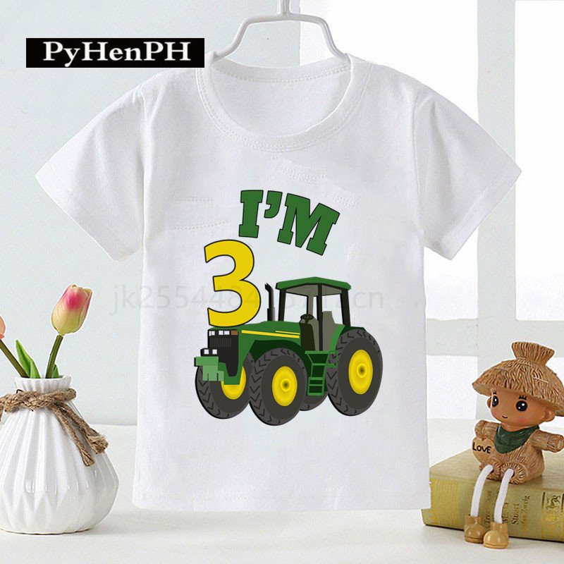 Kids Casual Cartoon Engineering Vehicle Birthday Number Pattern Round Neck Short Sleeve Loose T-Shirt