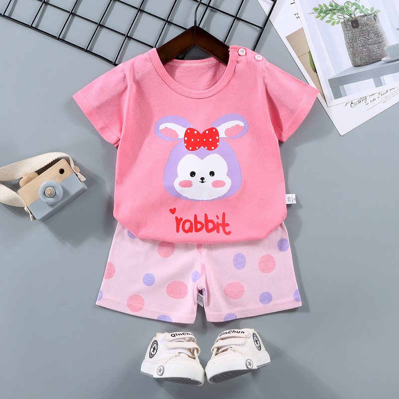 Kids Casual Cartoon Pattern Round Neck Short Sleeve Loose T-Shirt And Elastic Shorts Set
