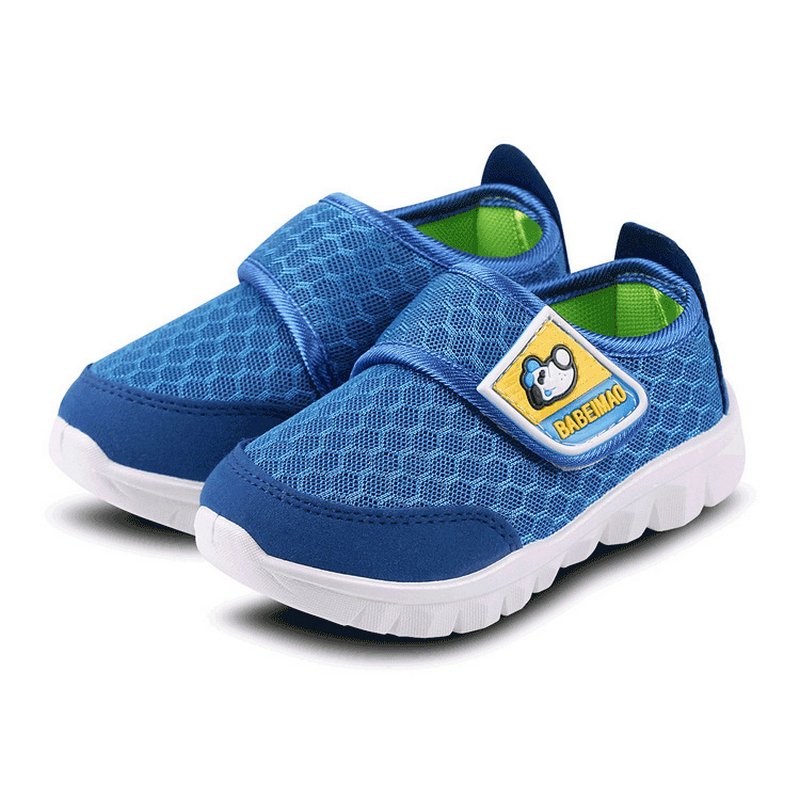 Kids Casual Cartoon Puppy Pattern Hollow Out Breathable Velcro Sneakers