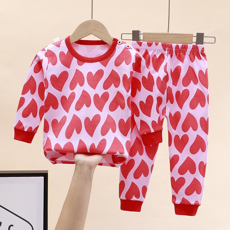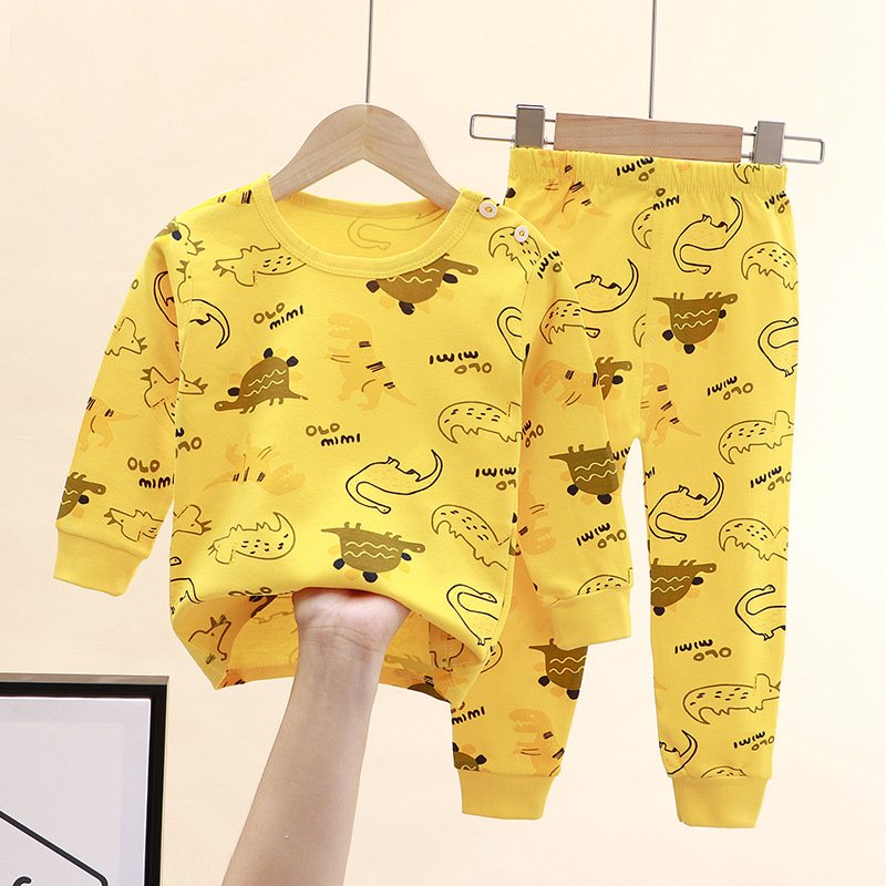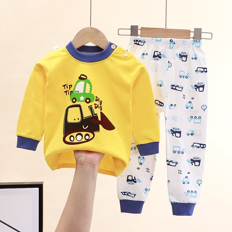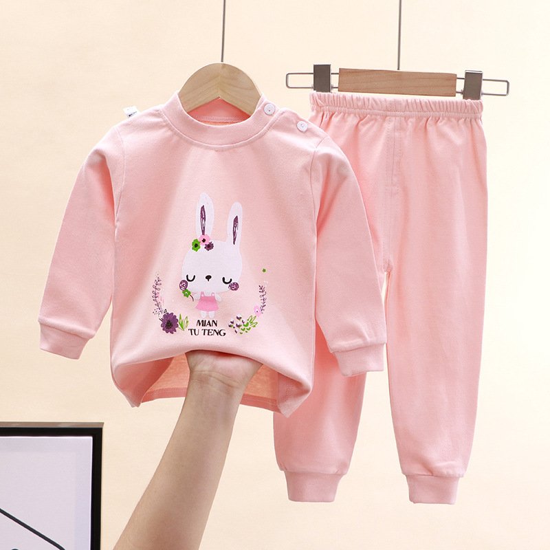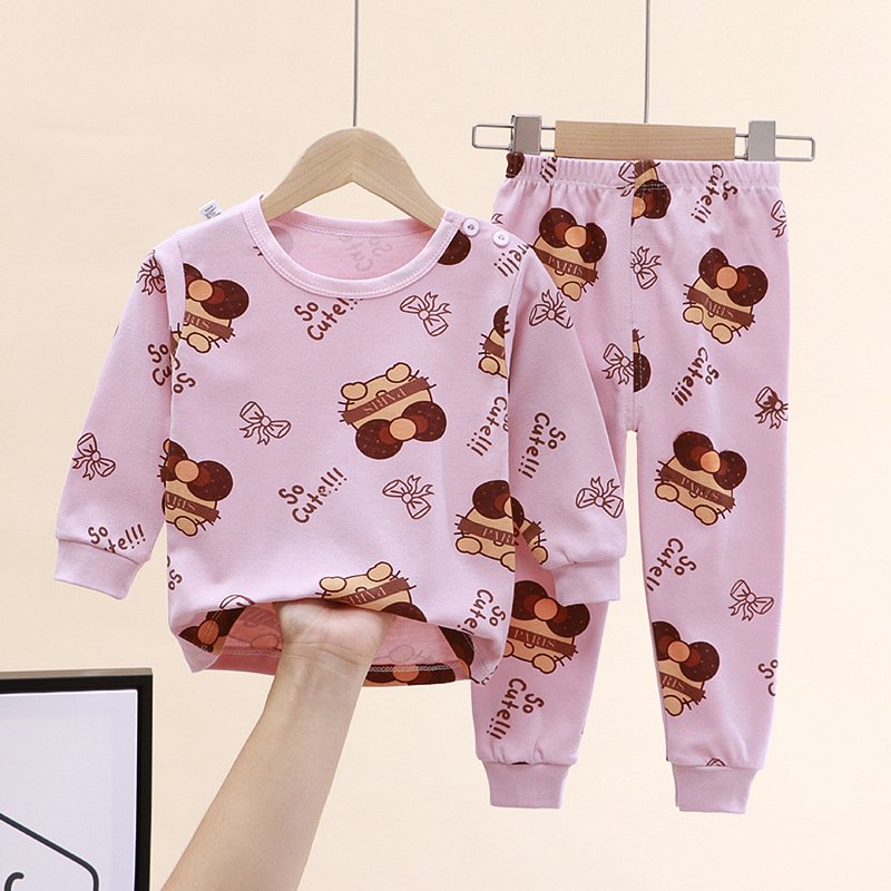 Kids Casual Cartoon Round Neck Long Sleeve Top And Elastic Pants Pajama Set