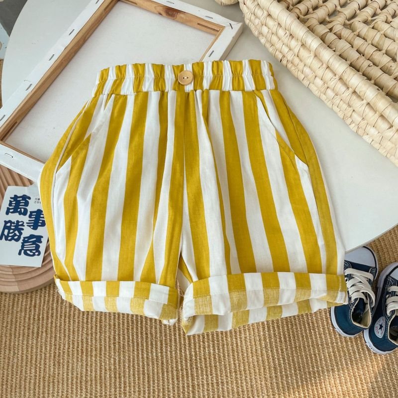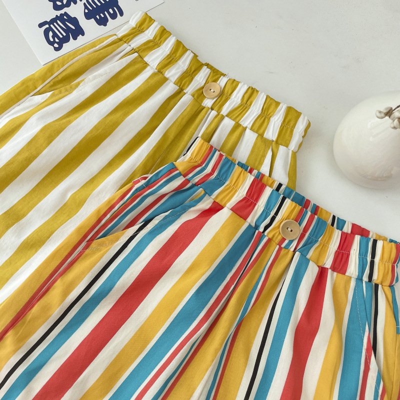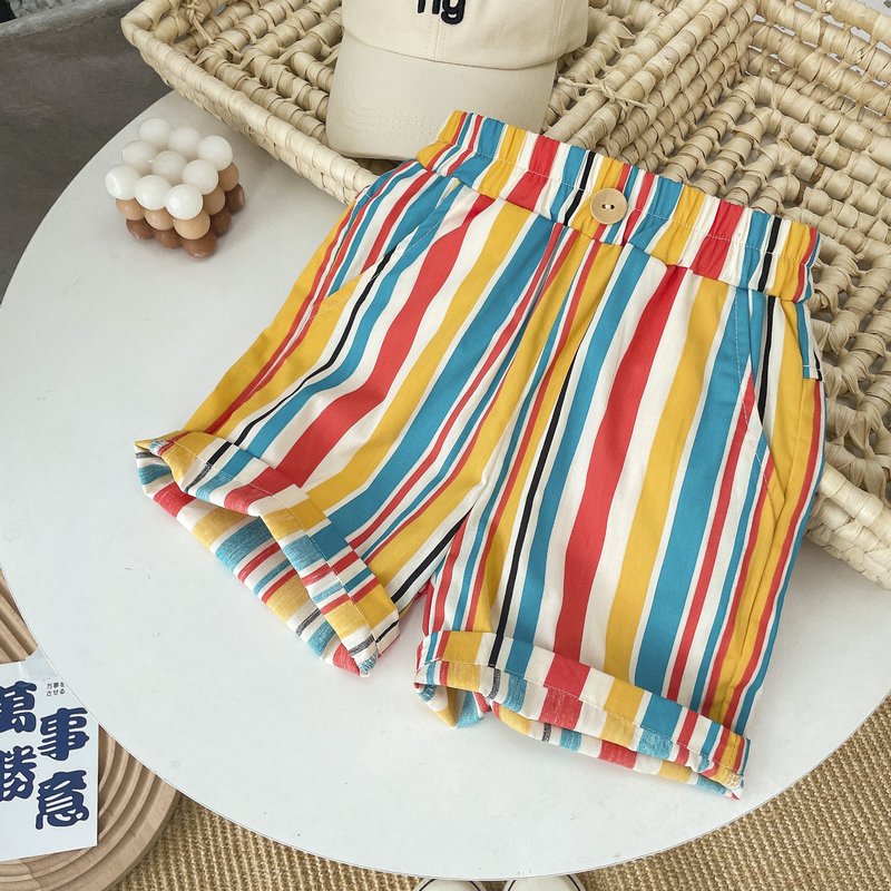Kids Casual Color Blocking Elastic Waist Stripe Loose Shorts