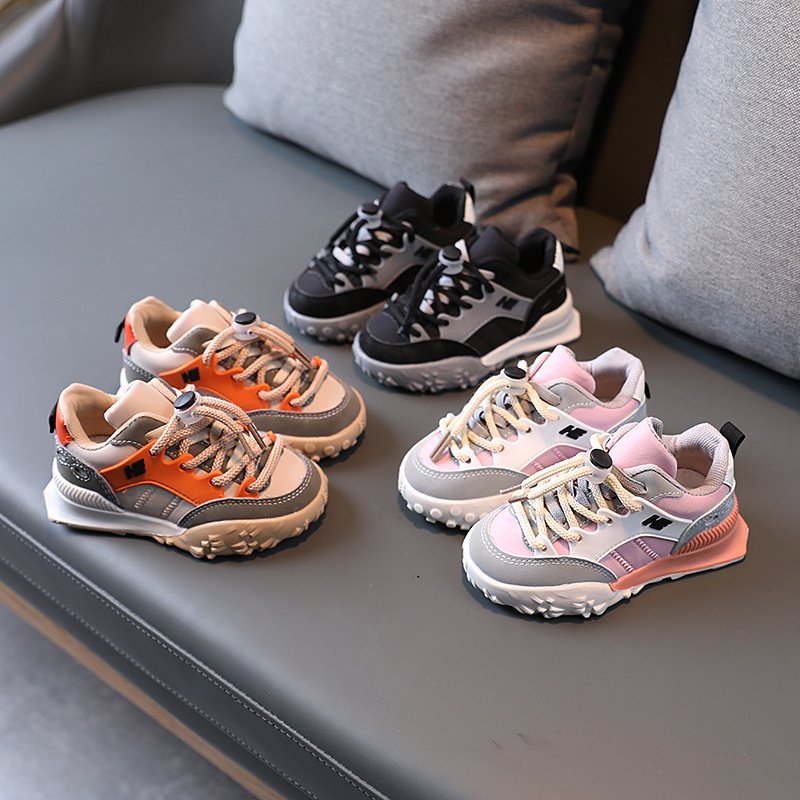 Kids Casual Color Blocking Lace Up Anti-slip Sneakers