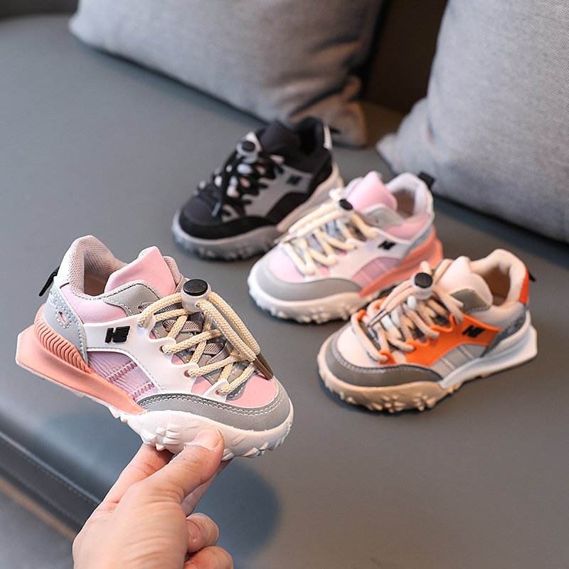 Kids Casual Color Blocking Lace Up Anti-slip Sneakers