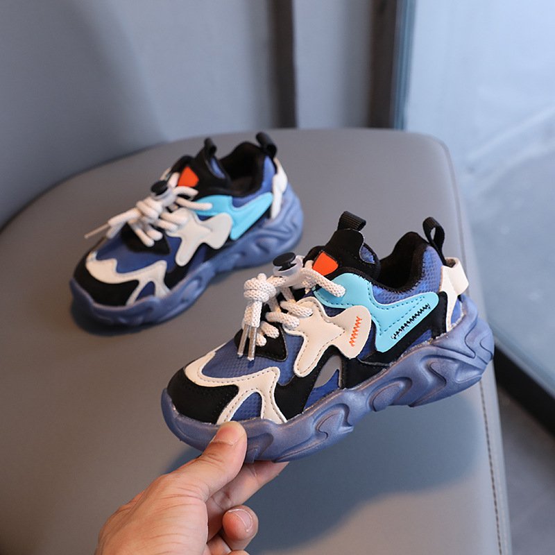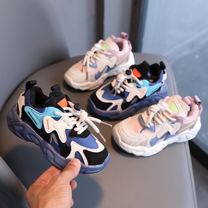 Kids Casual Color Blocking Soft-soled Lace-up Sneakers