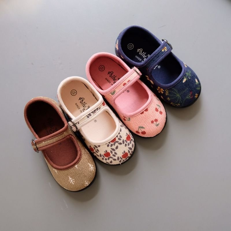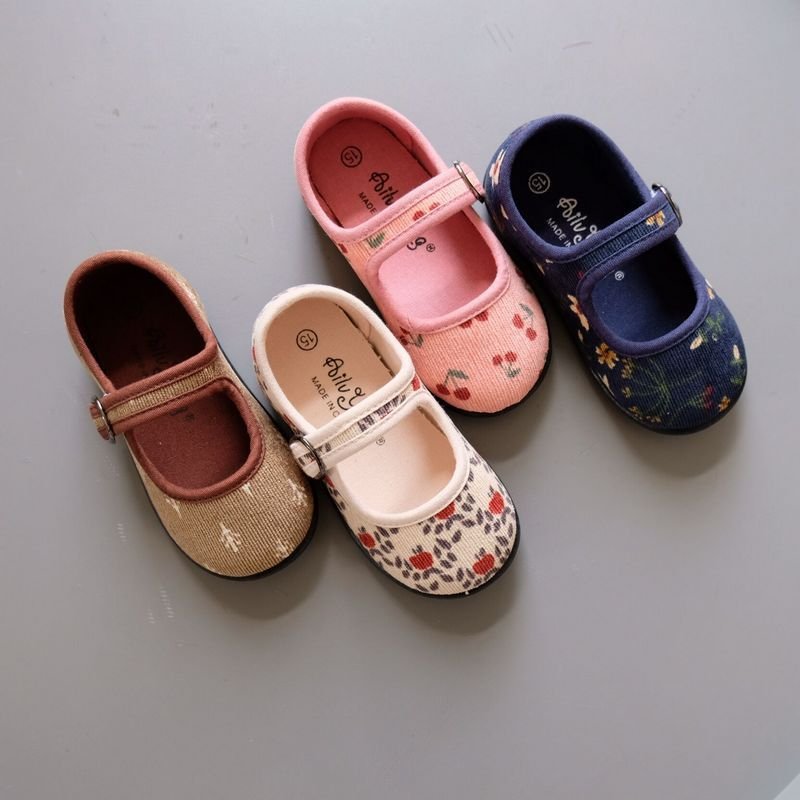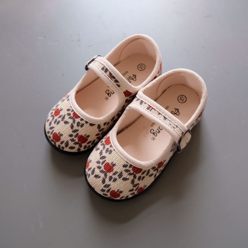 Kids Casual Corduroy Tiny Flower Square Canvas Flats