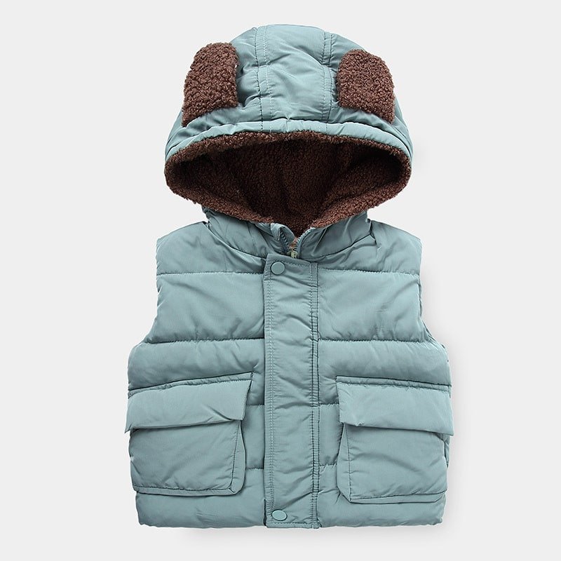 Kids Casual Cute Bear Ear Decor Zipper Design Pocket Sleeveless Quilted Jacket