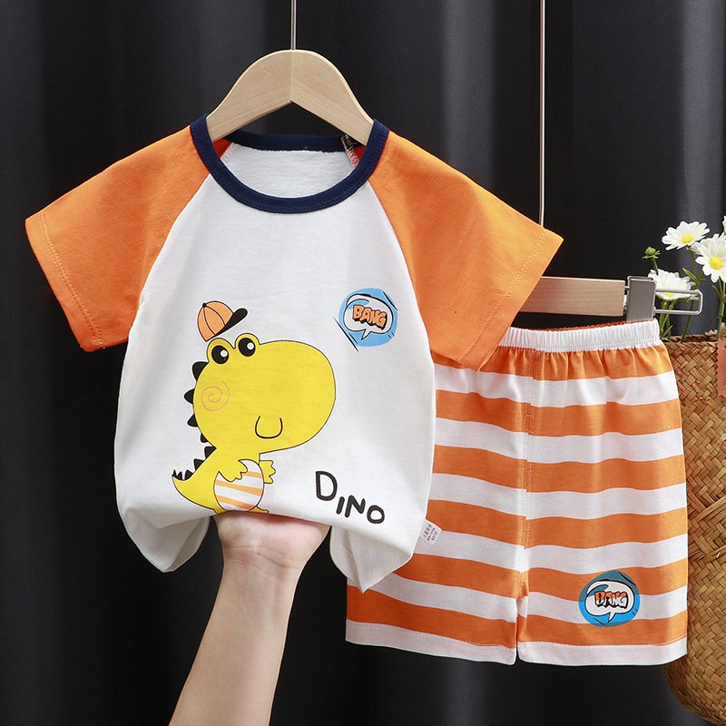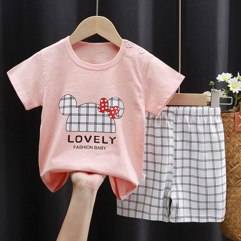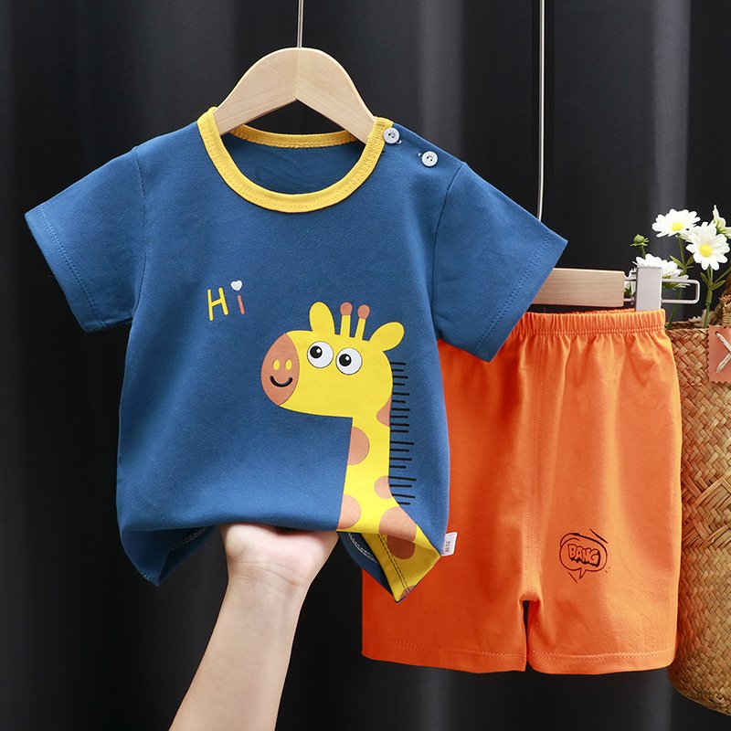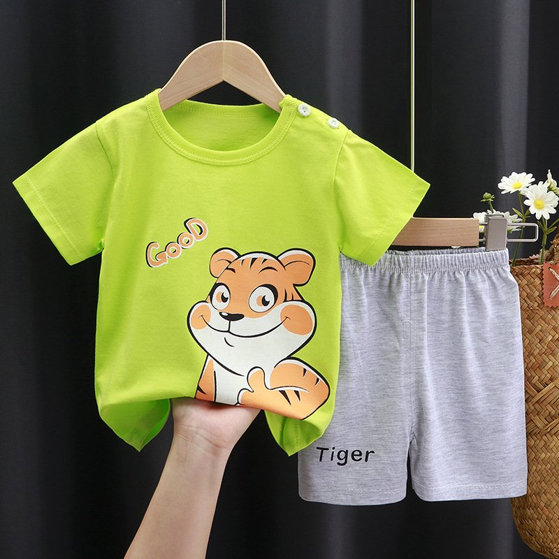 Kids Casual Cute Cartoon Pattern Round Neck Short Sleeve Loose T-Shirt And Elastic Shorts Set