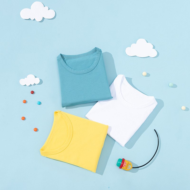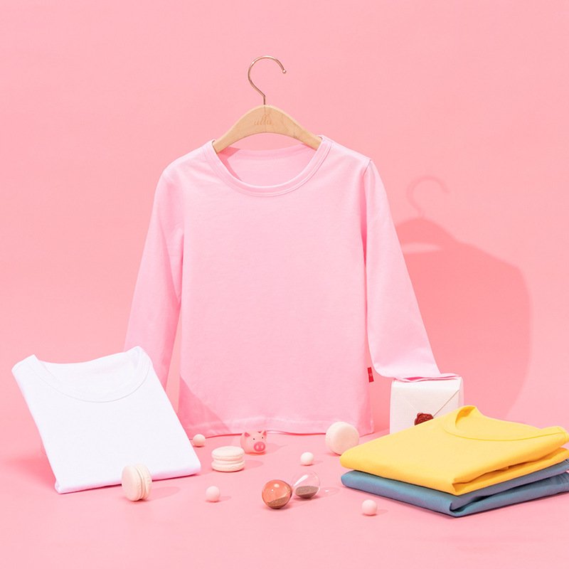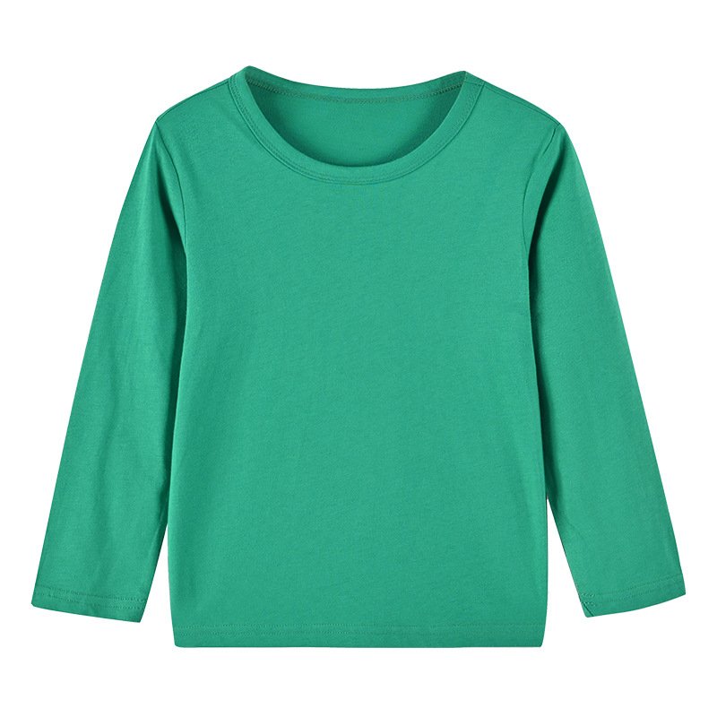 Kids Casual Plain Soft Round Neck Long Sleeve Solid Color Base Shirt
