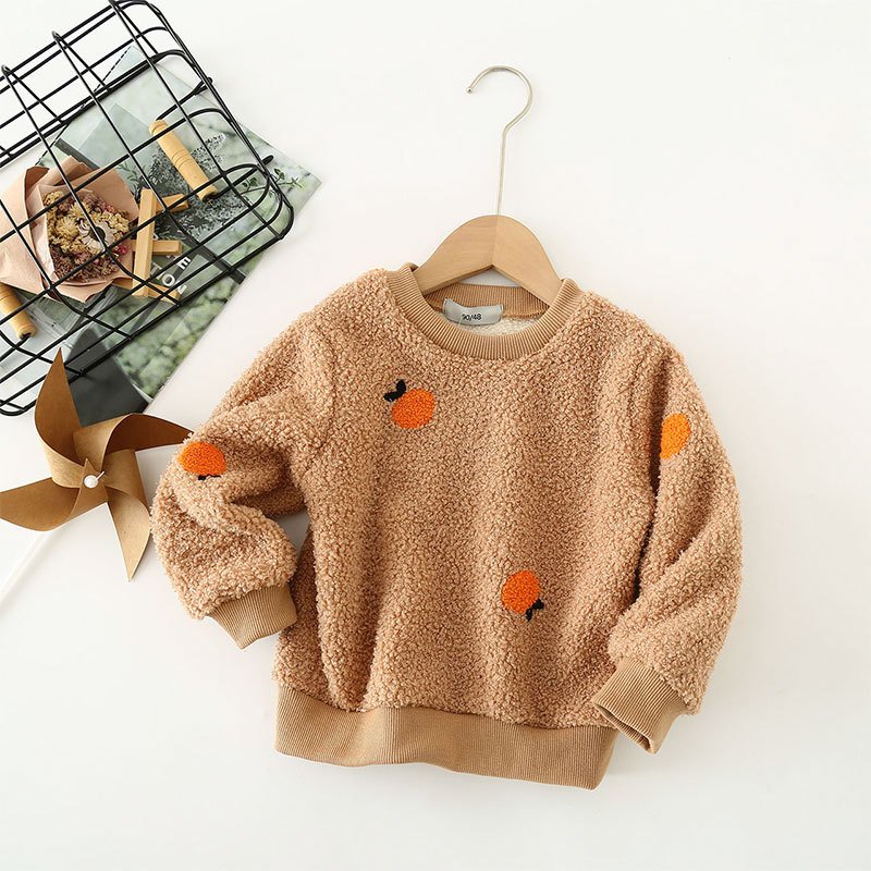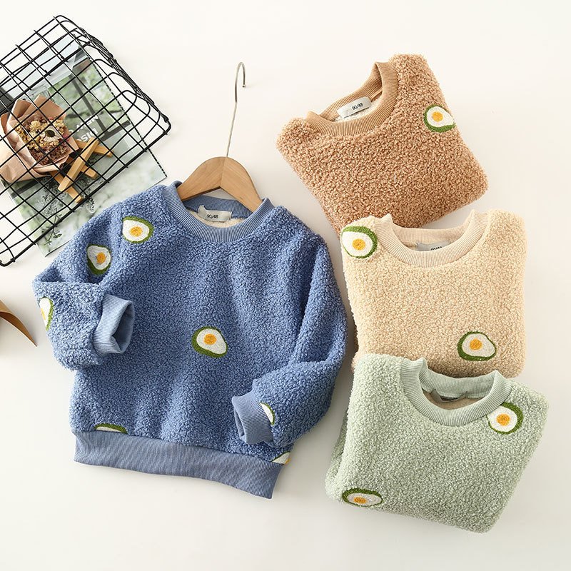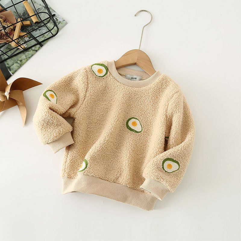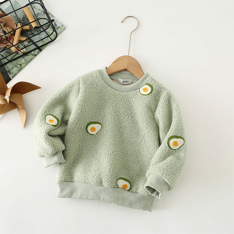Kids Casual Round Neck Long Sleeve Fruit Pattern Plush Sweatshirt