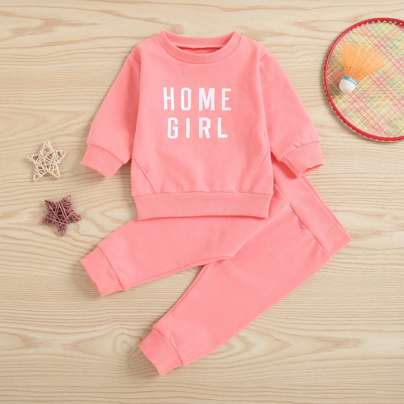 Kids Casual Round Neck Long Sleeve Letter Pattern Sweatshirt And Sweatpants Set