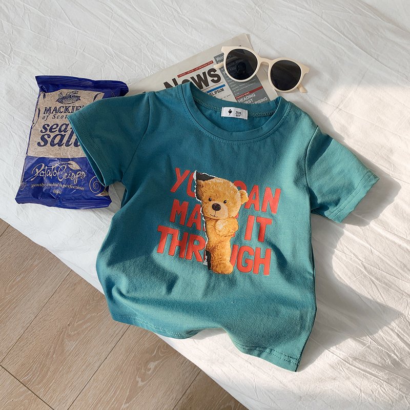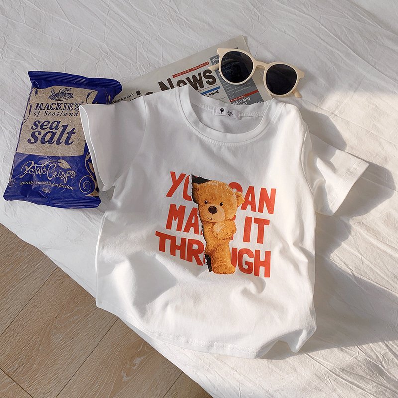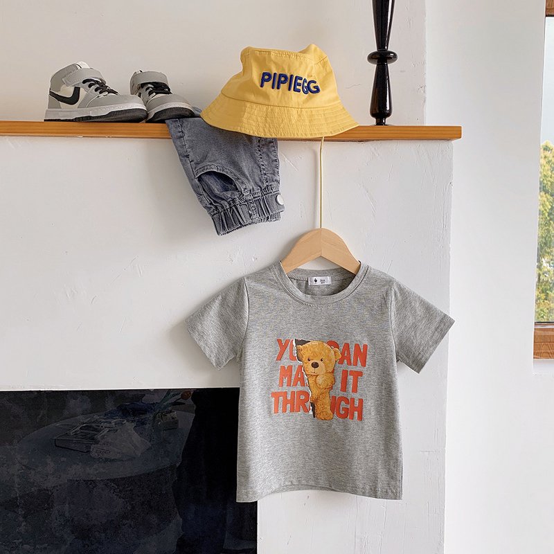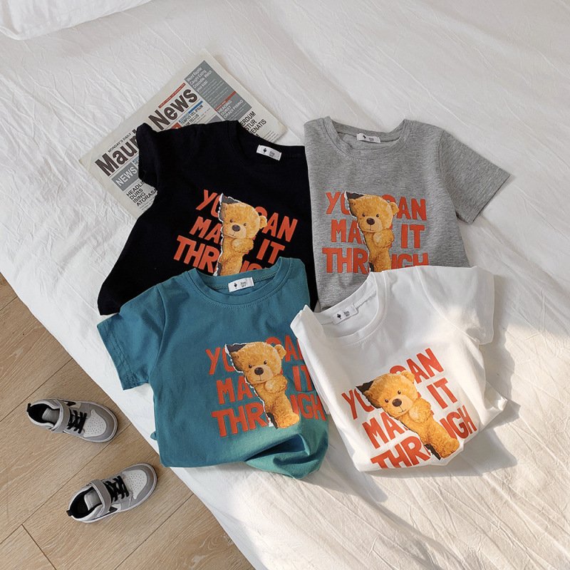 Kids Casual Round Neck Short Sleeve Cartoon Bear Letter Pattern Loose T-Shirt