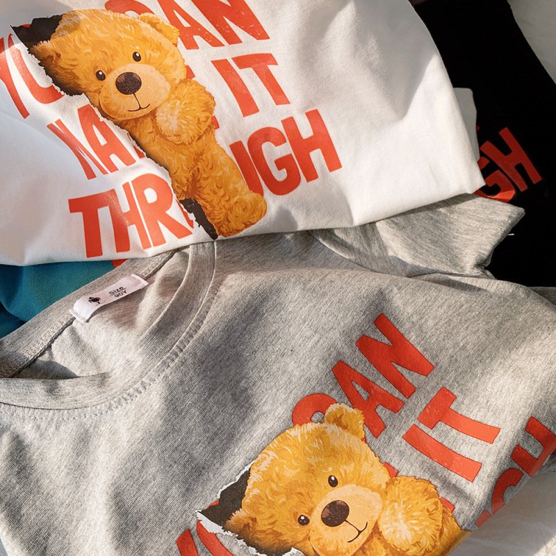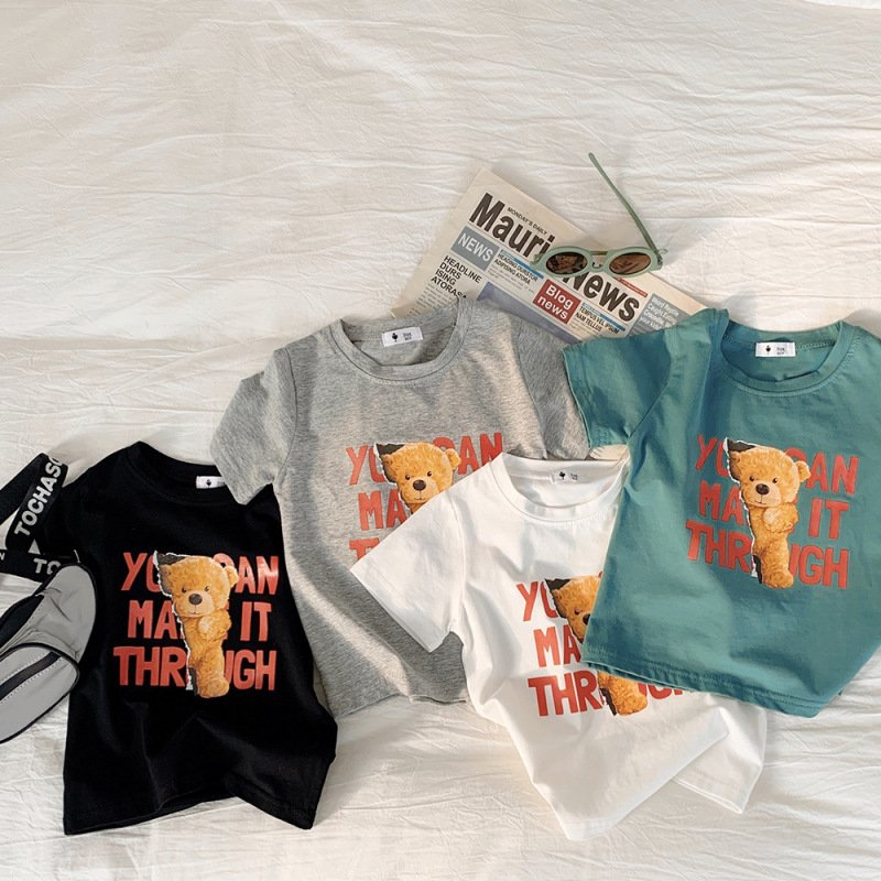 Kids Casual Round Neck Short Sleeve Cartoon Bear Letter Pattern Loose T-Shirt