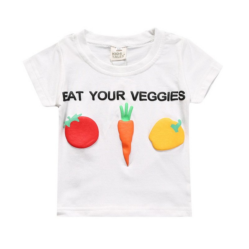 Kids Casual Round Neck Short Sleeve Cartoon Carrot Pattern Basic T-Shirt