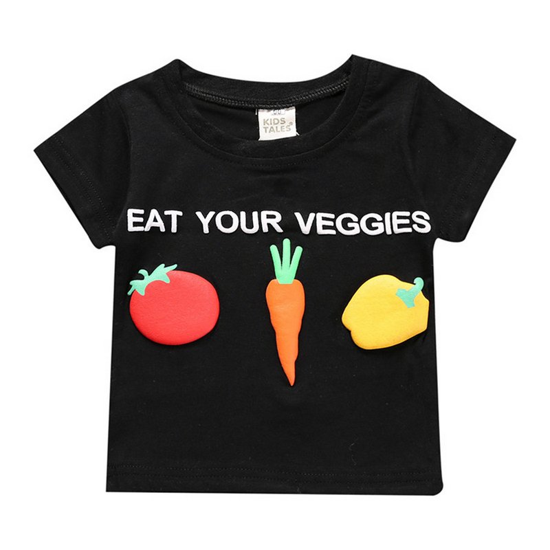 Kids Casual Round Neck Short Sleeve Cartoon Carrot Pattern Basic T-Shirt