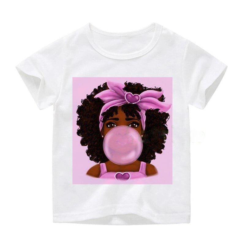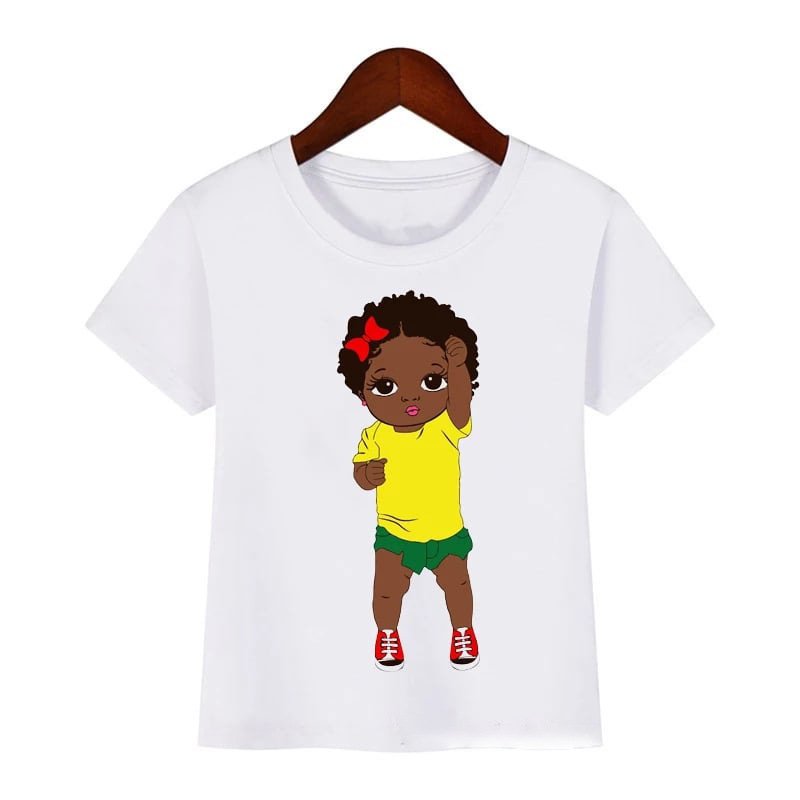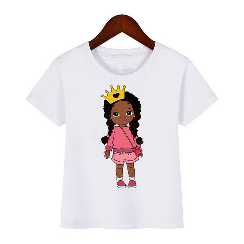 Kids Casual Round Neck Short Sleeve Cartoon Doll Pattern Comfortable Loose T-Shirt