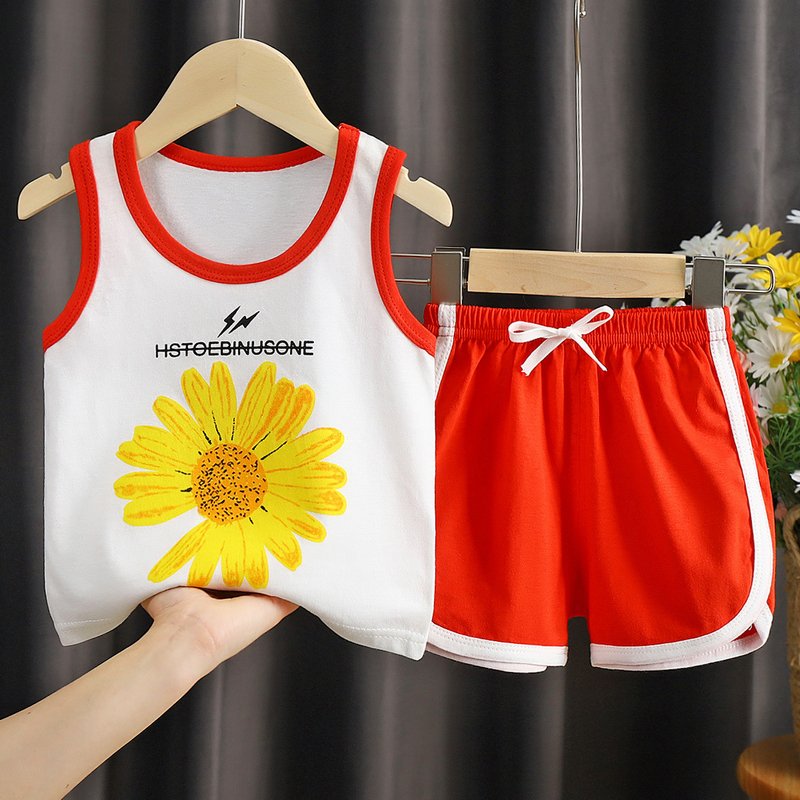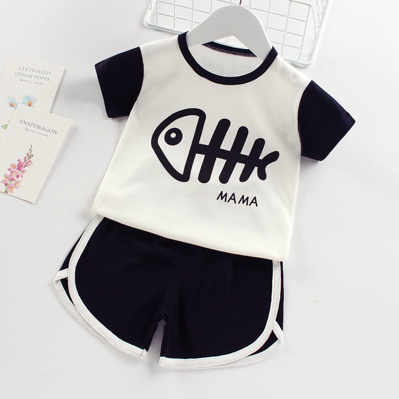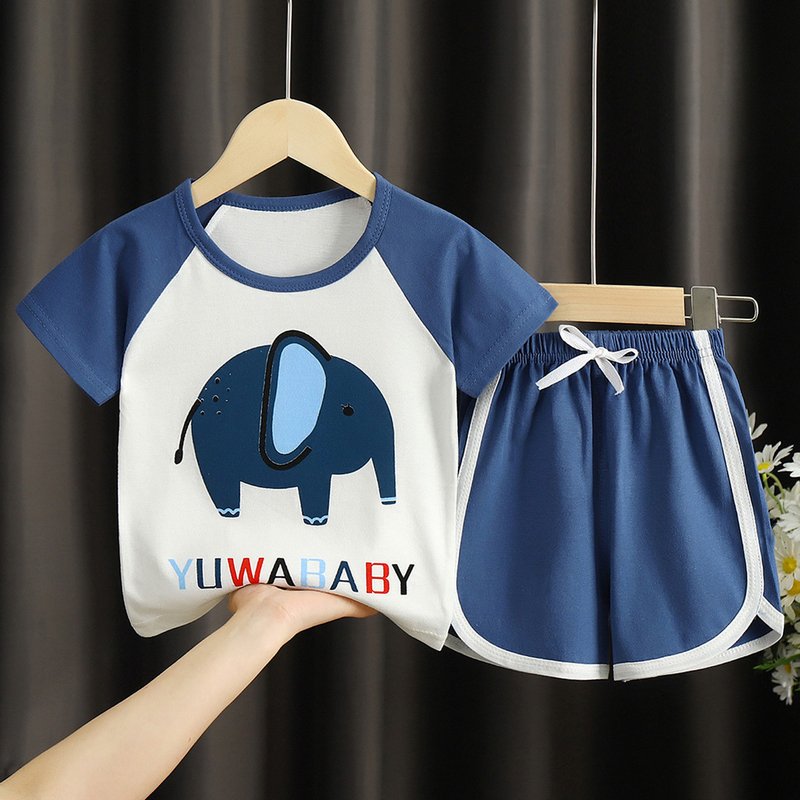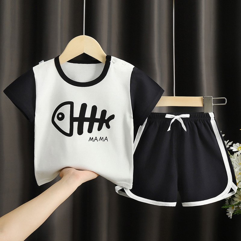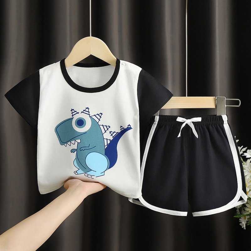 Kids Casual Round Neck Short Sleeve Cartoon T-Shirt And Shorts Set