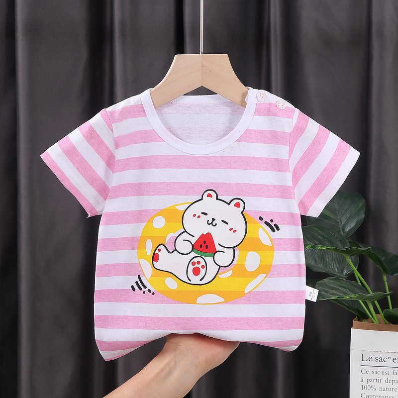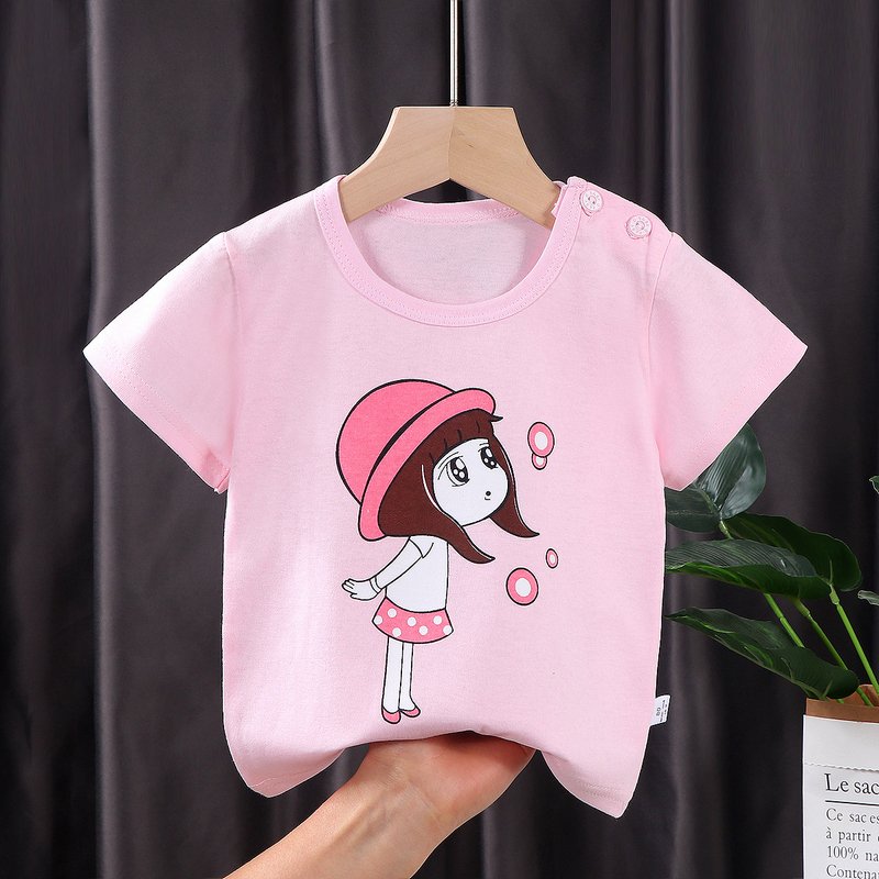 Kids Casual Round Neck Short Sleeve Cute Cartoon Pattern Loose T-Shirt