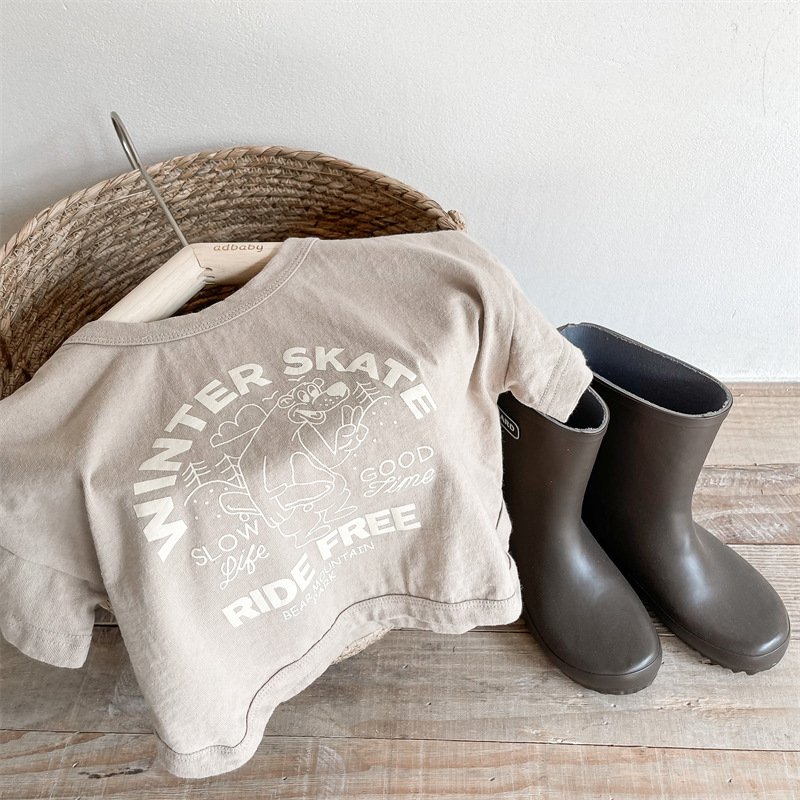 Kids Casual Round Neck Short Sleeve Letter Cartoon Pattern Loose T-Shirt