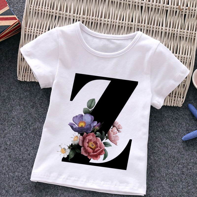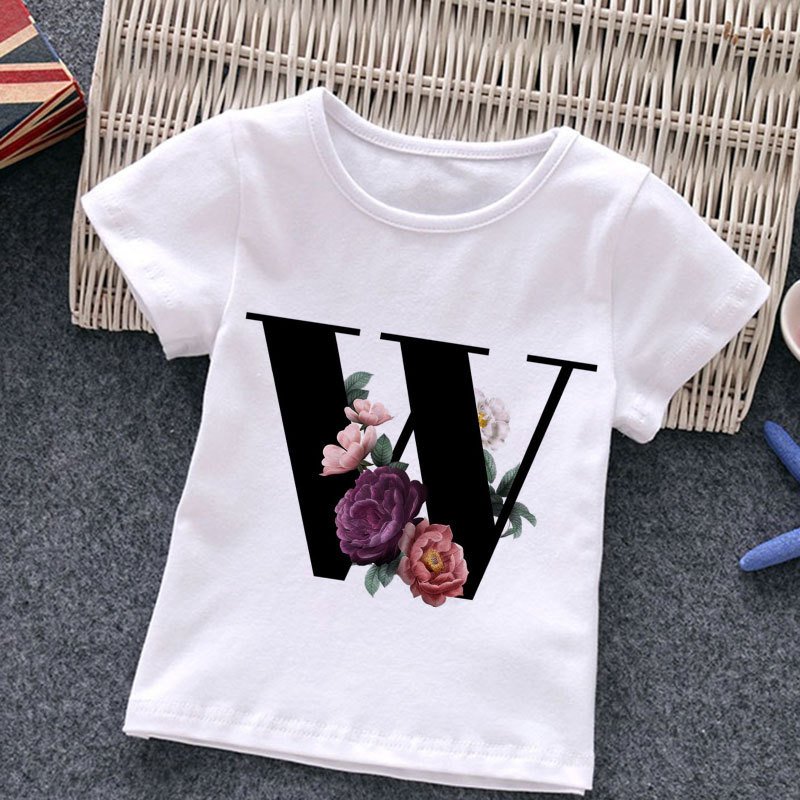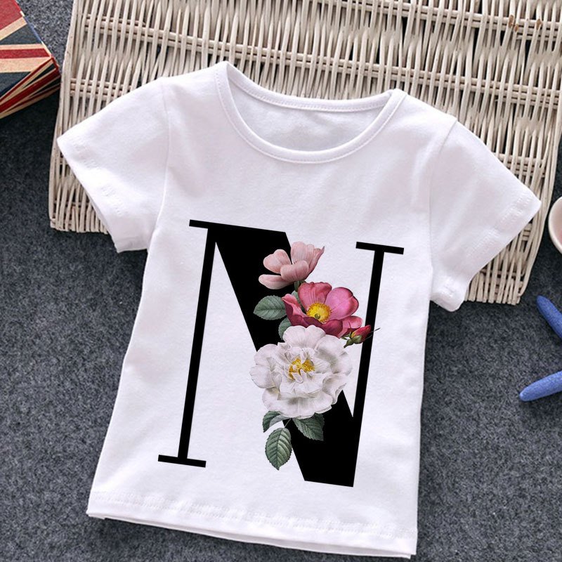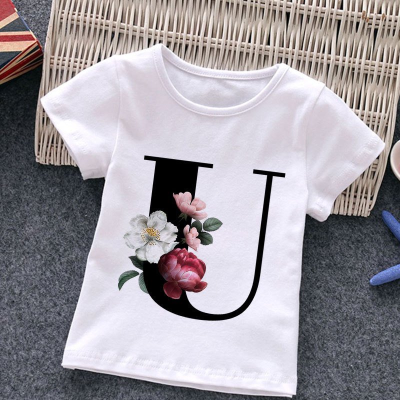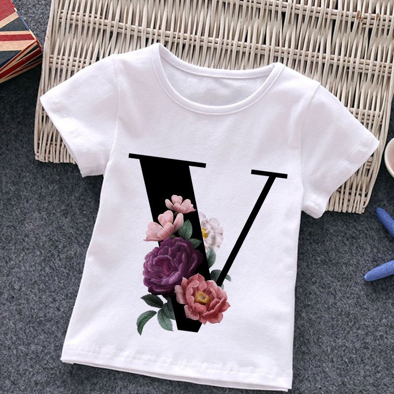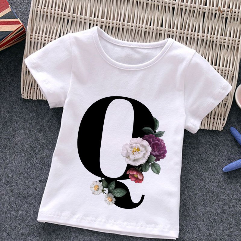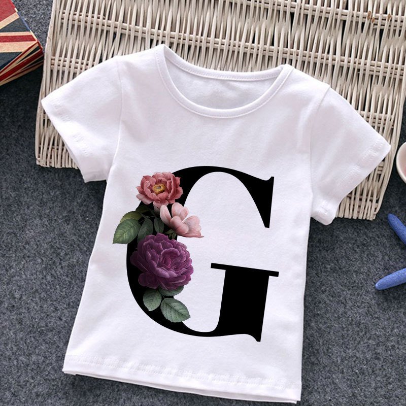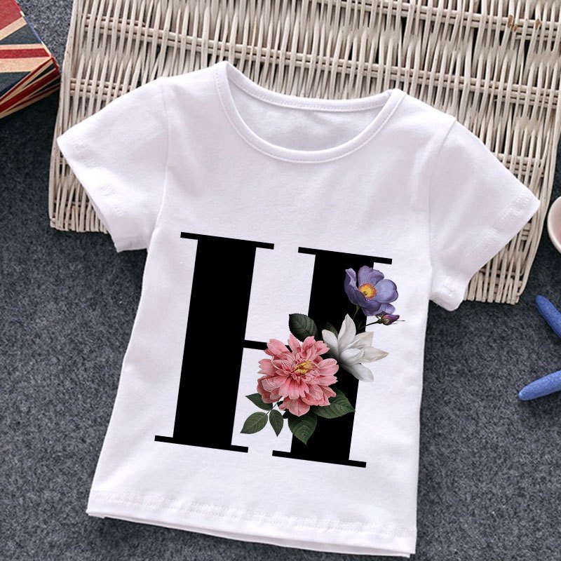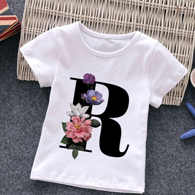Kids Casual Round Neck Short Sleeve Letters Flower Pattern T-Shirt