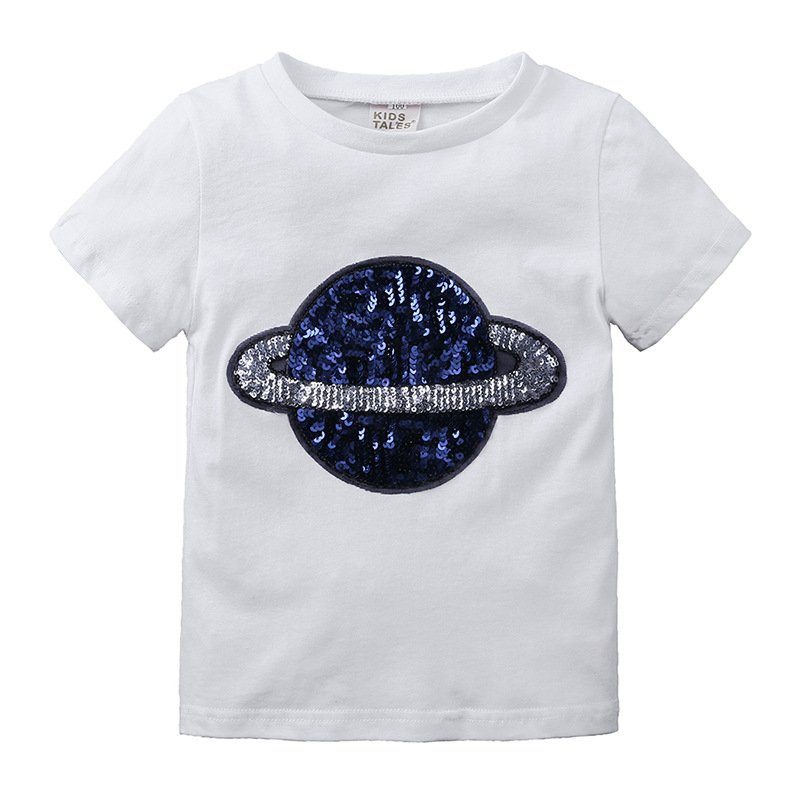Kids Casual Round Neck Short Sleeve Sequin Star Design T-Shirt
