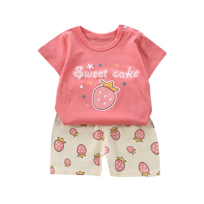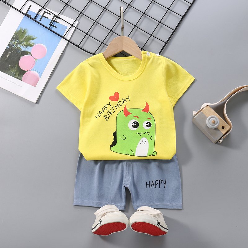Kids Casual Round Neck Short-sleeved Cartoon Animal T-Shirt And Shorts Set