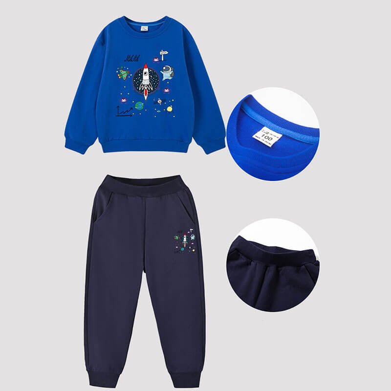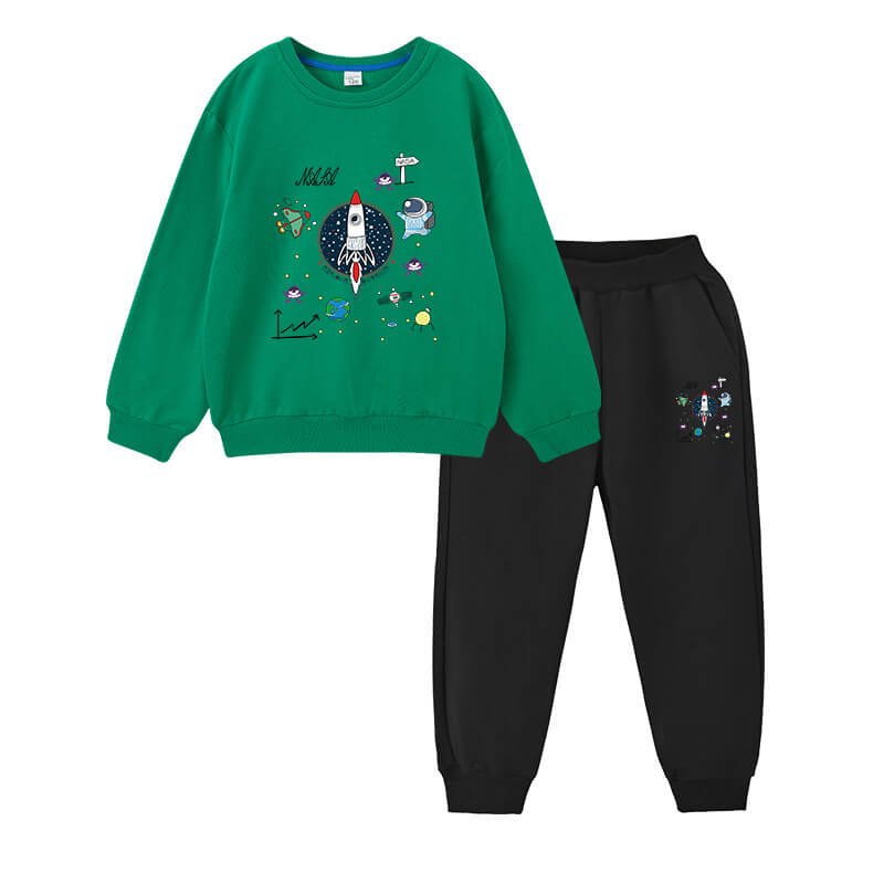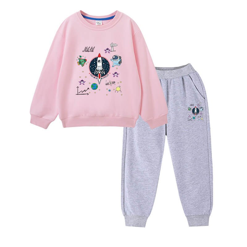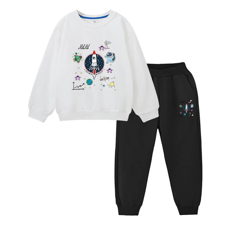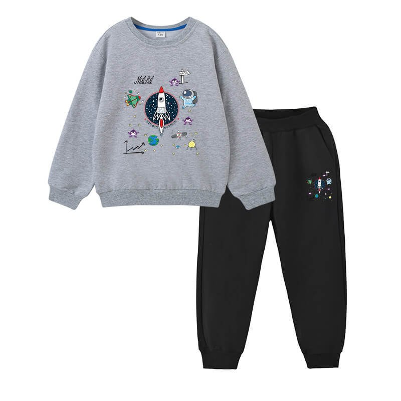 Kids Casual Round Neck Space Printed Sweatshirt And Jogger Pants Set