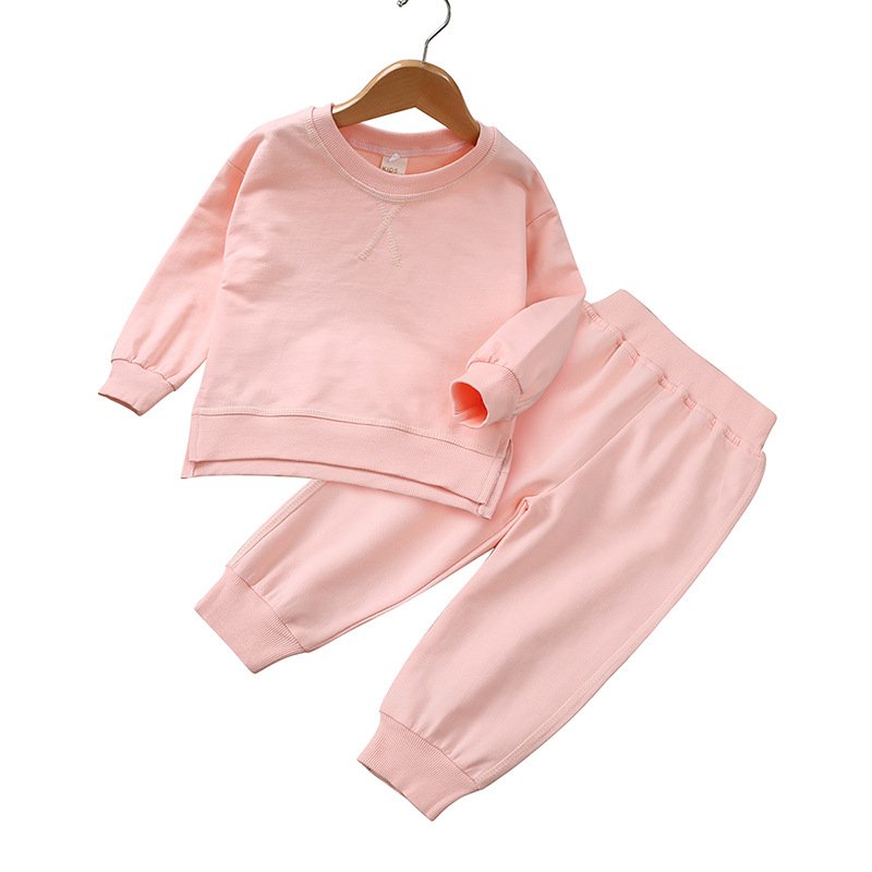 Kids Casual Simple Round Neck Long Sleeve Solid Color Sweatshirt And Sweatpants Set