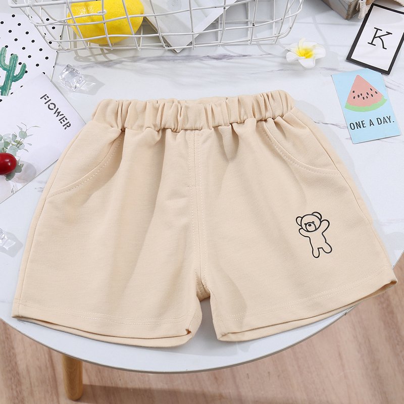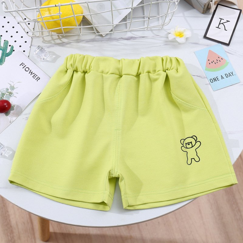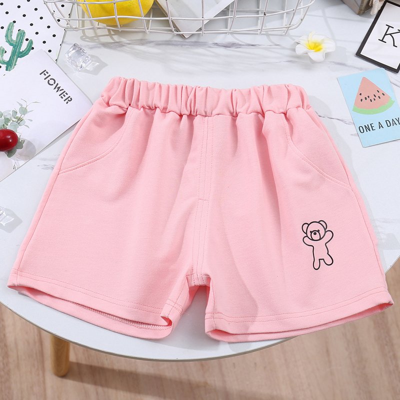 Kids Casual Simple Solid Color Bear Pattern Elastic Waist Shorts