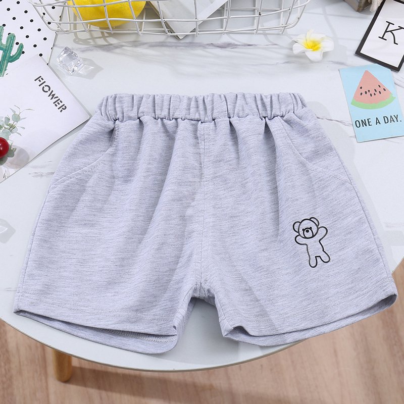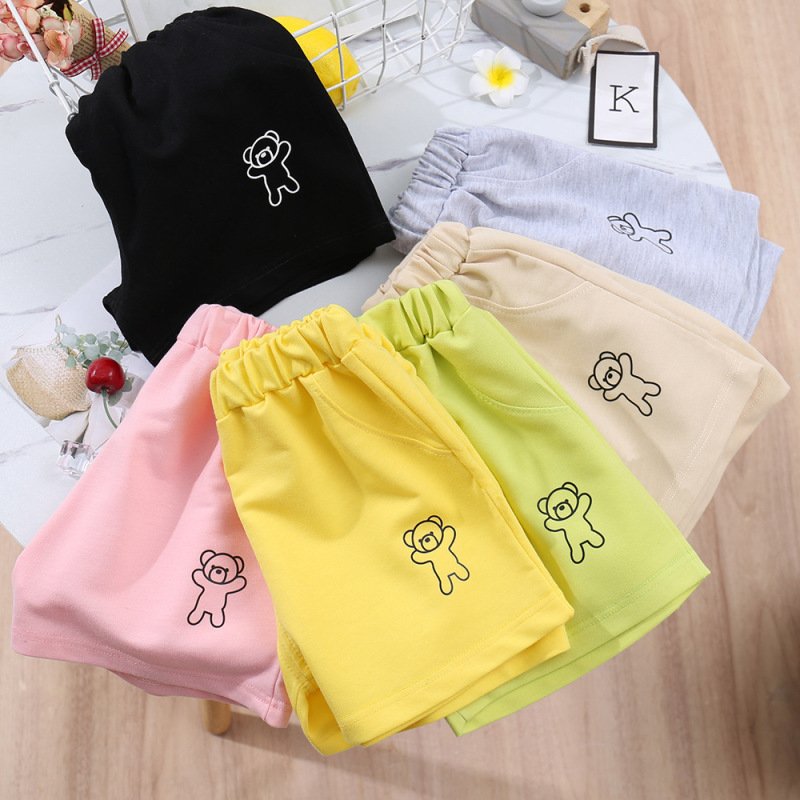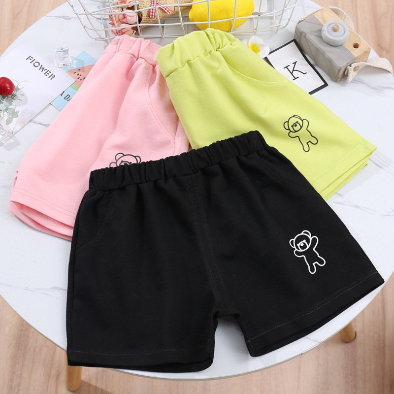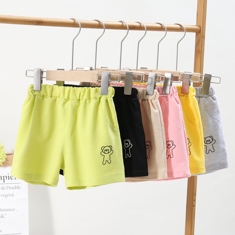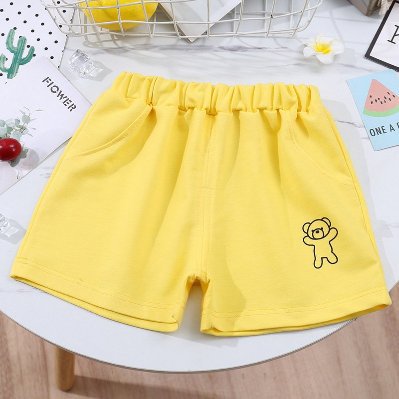 Kids Casual Simple Solid Color Bear Pattern Elastic Waist Shorts