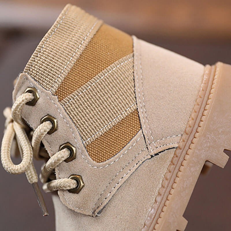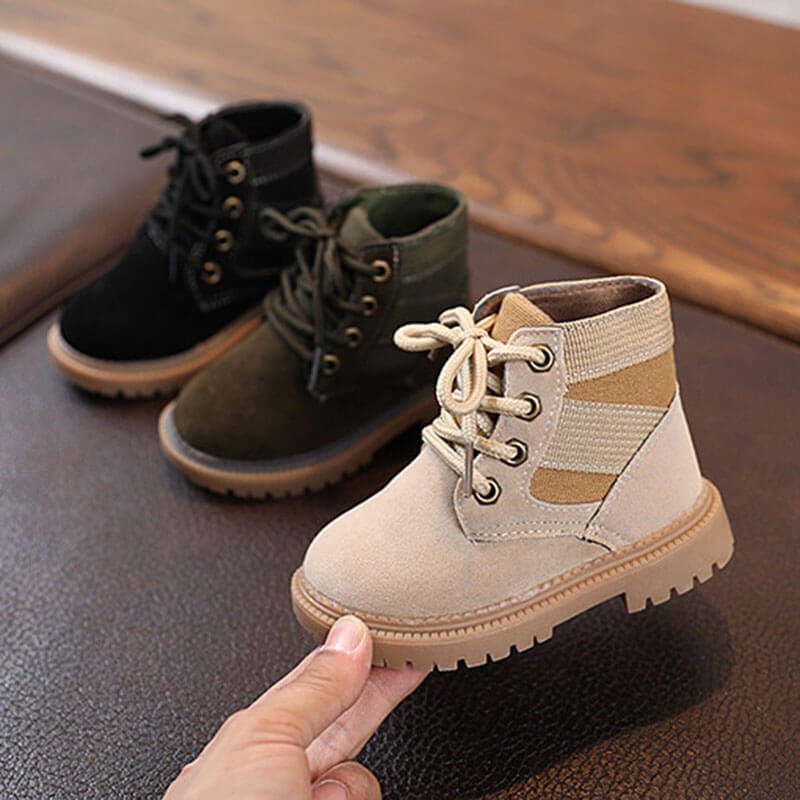 Kids Casual Solid Color Lace-up Boots