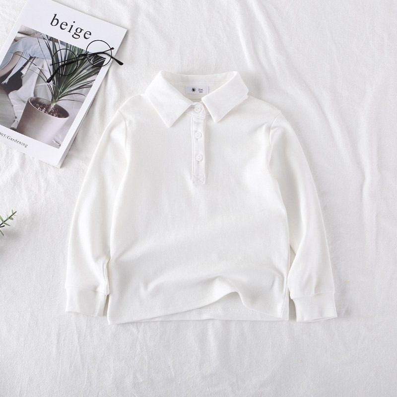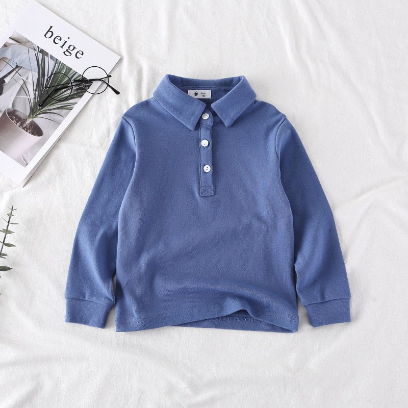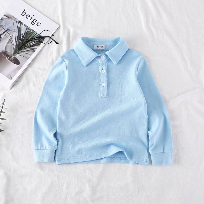 Kids Casual Solid Color Lapel Long Sleeve Loose Polo Shirts