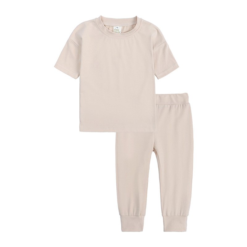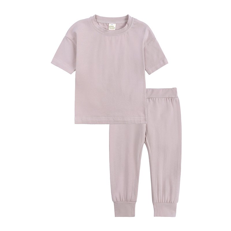 Kids Casual Solid Color Round Neck Short Sleeve T-Shirt And Pants Set