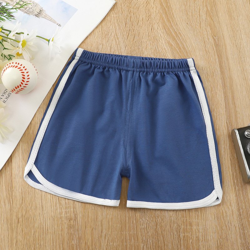 Kids Casual Solid Color Stripe Elastic Waist Sport Shorts